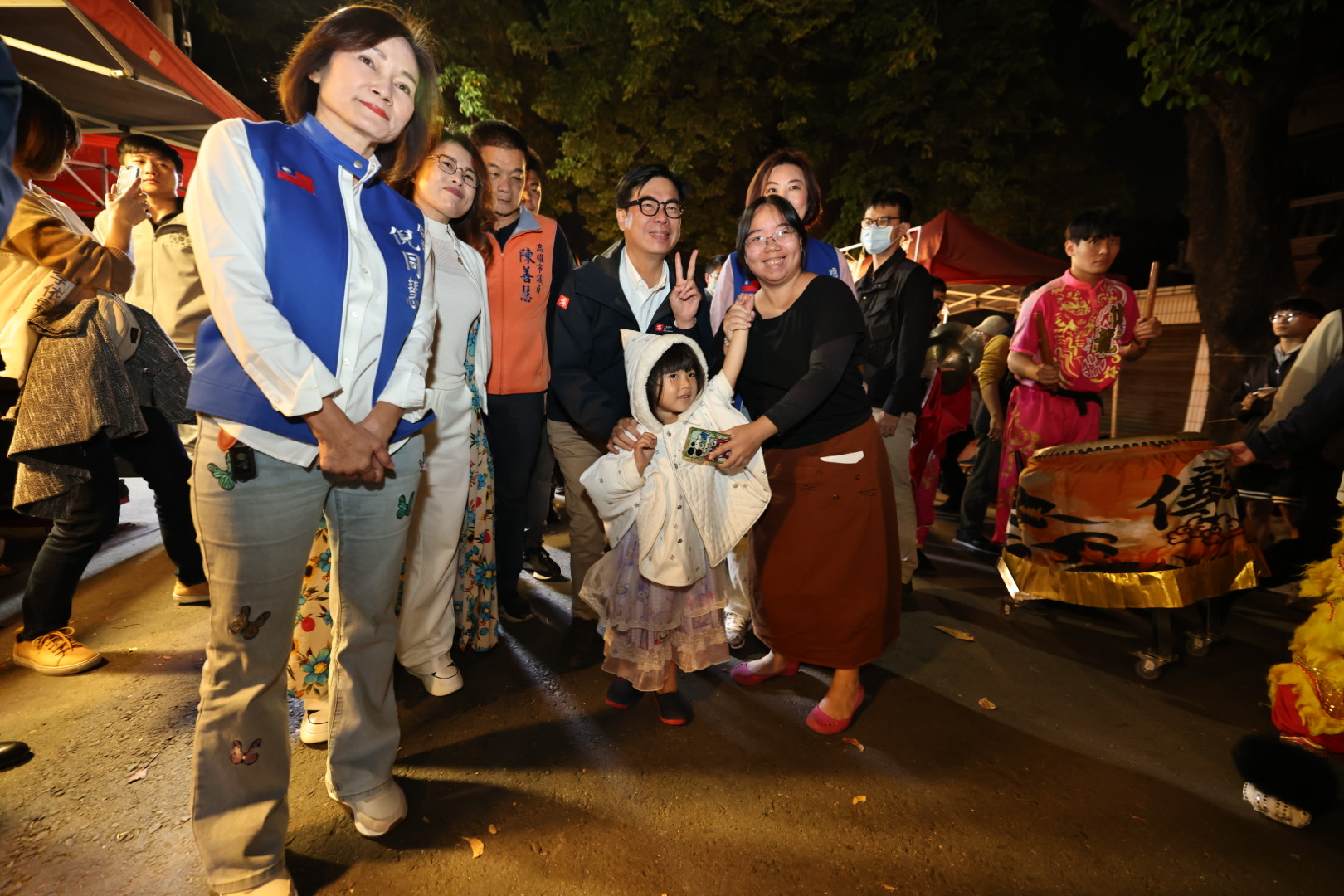 高雄左眷村年貨大街活動於左營建業新村開幕,市長陳其邁現身活動現場,與民眾互動合影。(記者翻攝)