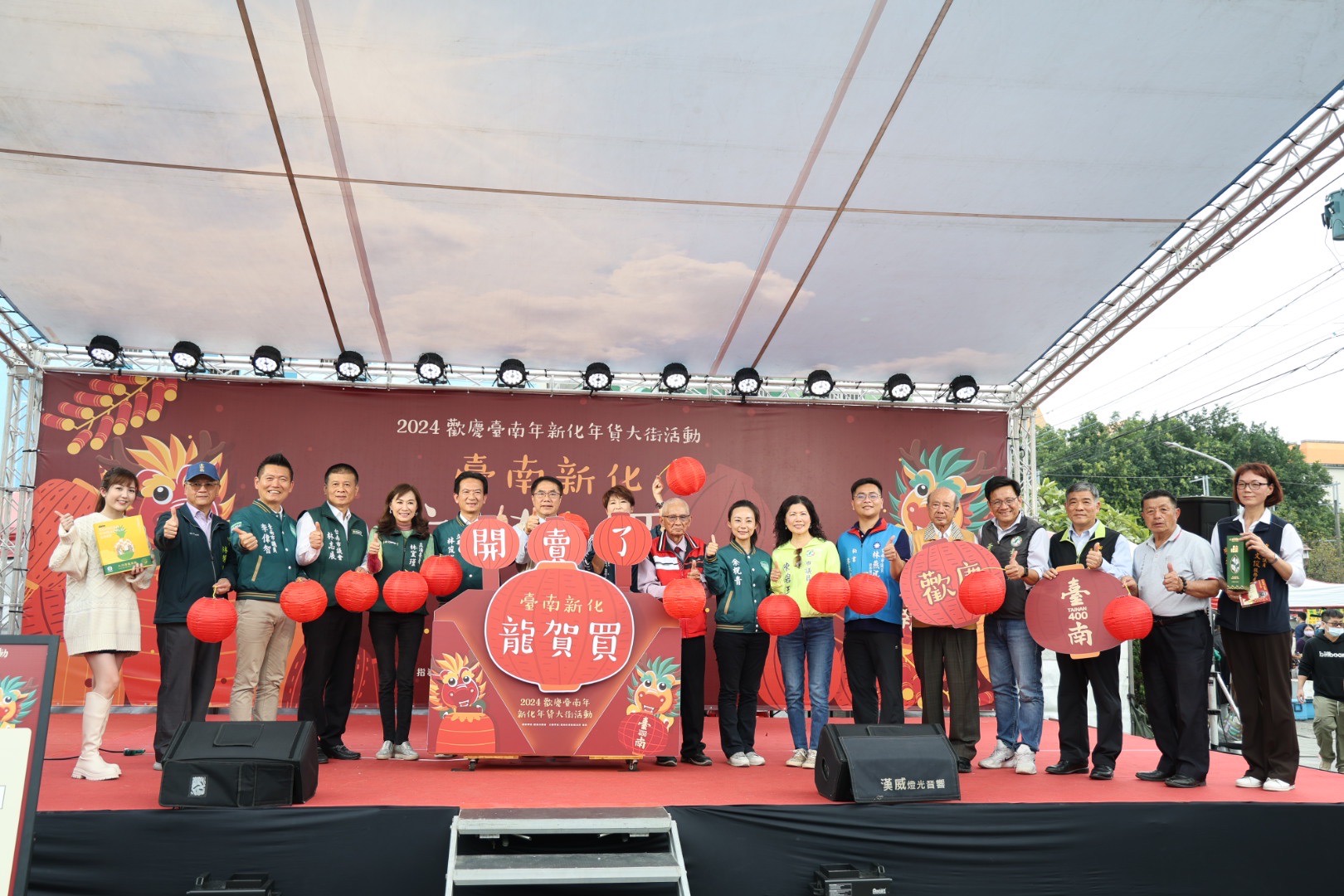 迎接農曆春節,2024新化年貨大街從2月2日至2月7日於新化老街熱鬧舉行,本次共設有150個攤位,提供南北貨、伴手禮、農特產品、美食小吃等,中午12點,現場就開始湧入逛街人潮,許多父母也帶著小孩一同前來採買年貨,立委林俊憲、陳亭妃、林宜瑾,市議員林志展、陳碧玉、黃肇輝、余柷青、李偉智也都一同前來共襄盛舉。