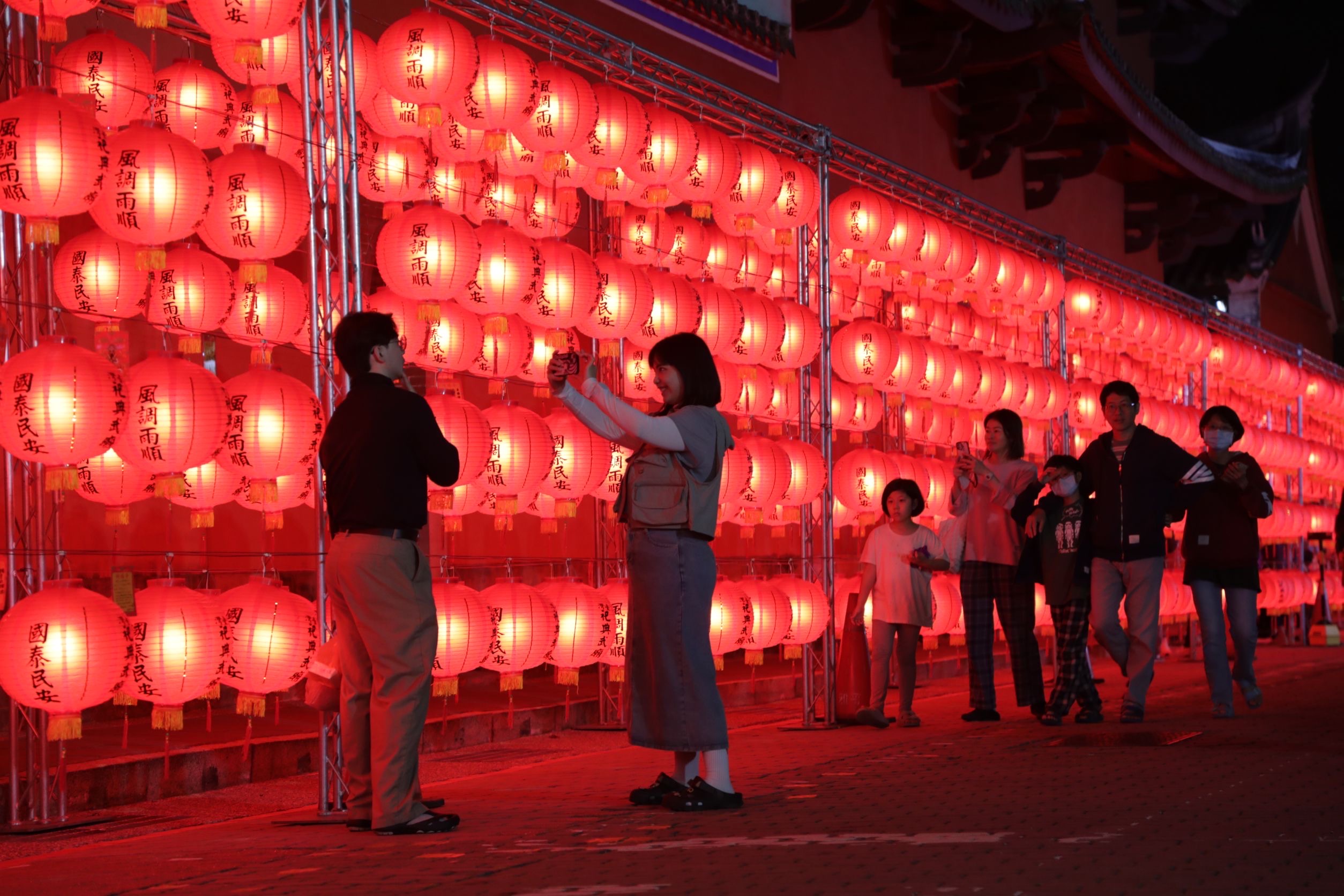 另外,「兌悅之門」路線第6站的台灣祀典武廟今晚也舉行啟燈。祀典武廟歷史悠久,其外邊廣場吊掛的整排紅色燈籠吸引民眾爭相拍照留戀。南市府感謝祀典武廟響應台灣燈會,過去連續兩年也舉辦祈福消防燈籠繪畫比賽及點燈活動,不僅成為台南文化亮點之一,也建立了每年提醒市民重視防火防災的傳統。