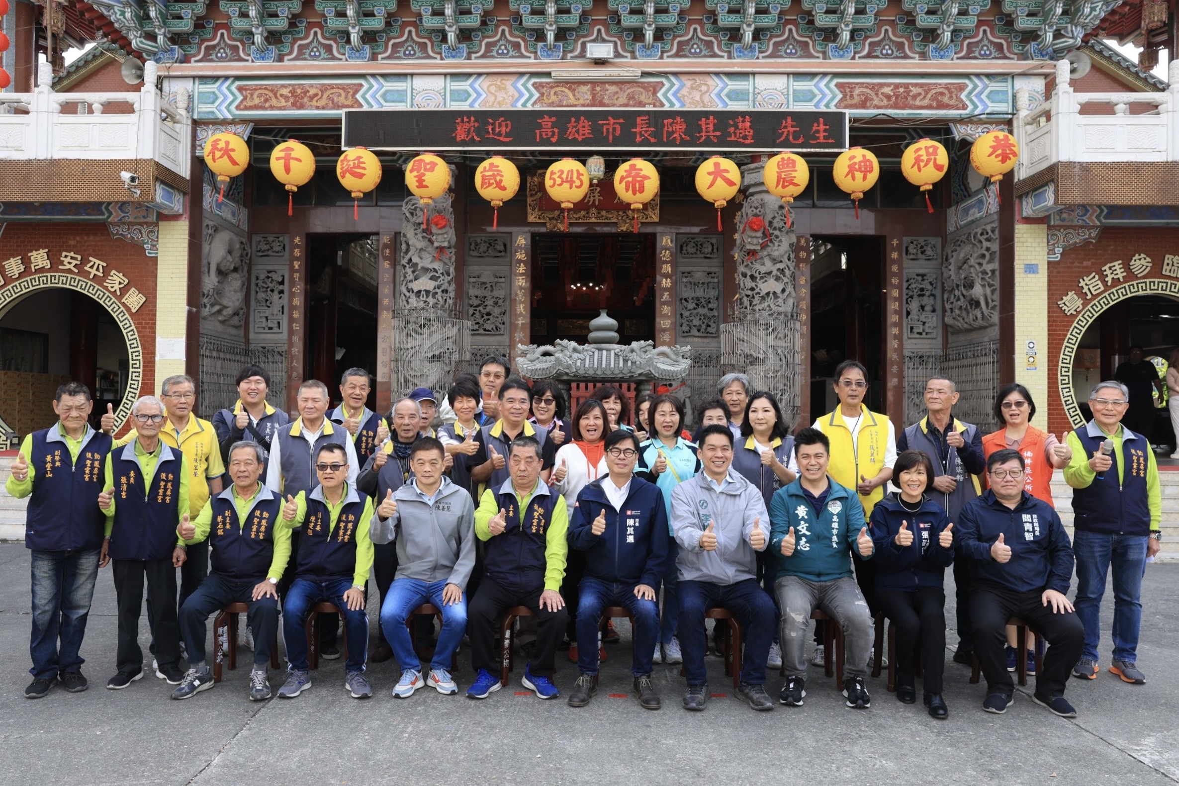 市長陳其邁率市府團隊與李柏毅立委及地方民意代表一同至楠梓鳳屏宮參拜,祈求國泰民安、風調雨順。 (高雄市政府提供)