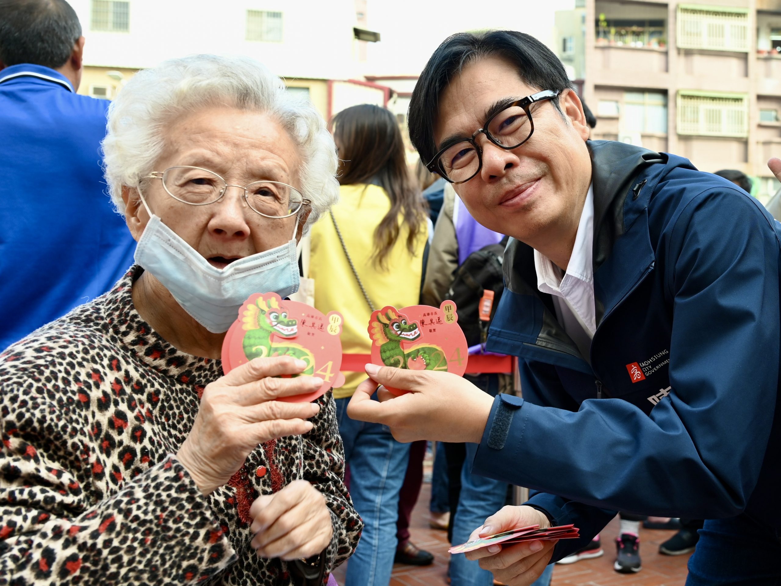 新春祝福熱烈進行中 陳其邁走春發小紅包祝市民平安、市政昌隆