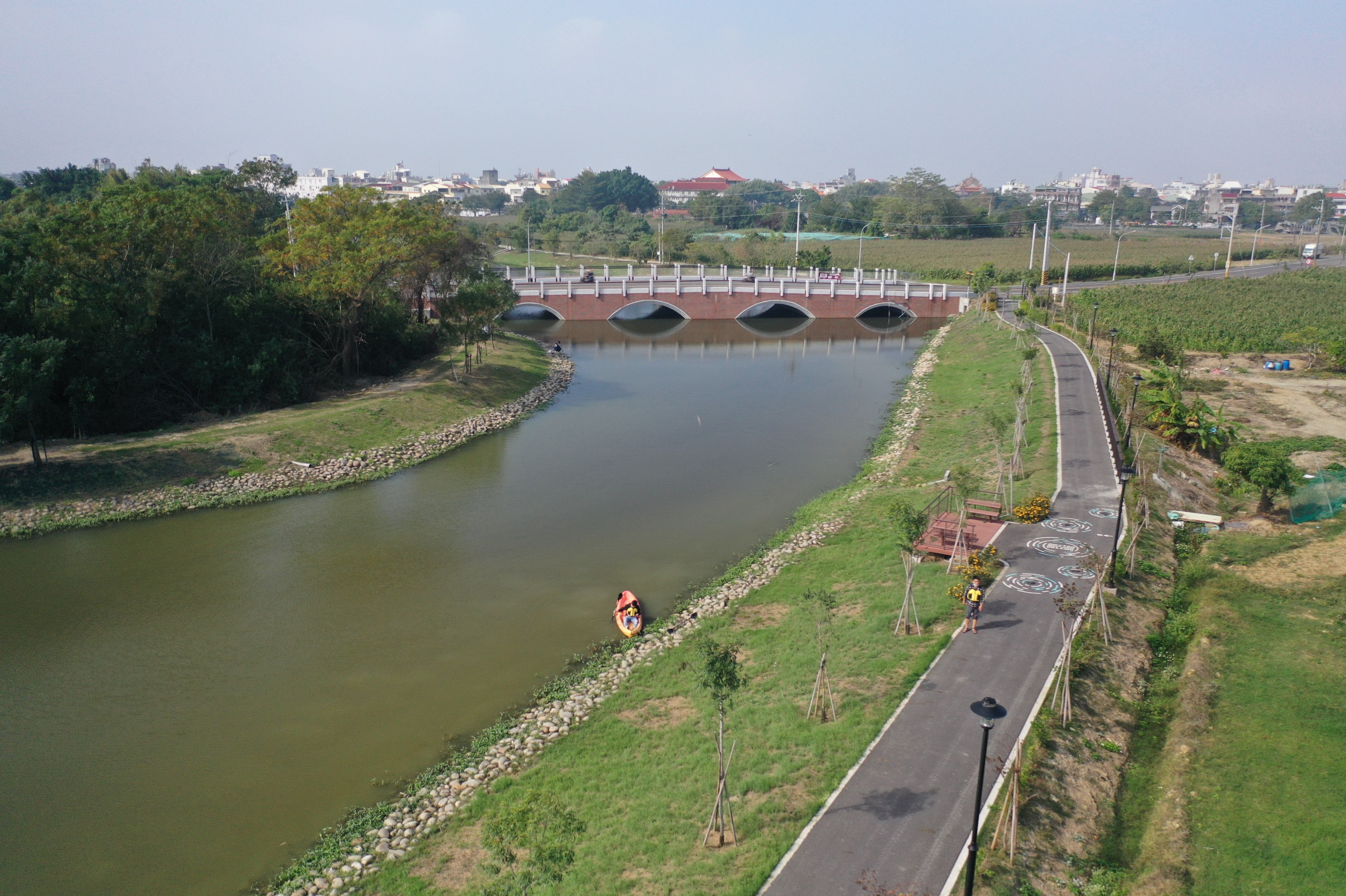 水利局表示,為達成優化水質恢復自然生態,於土庫路及信義路設置2座淨水廠,收集周遭民生污水,日污水處理量達930噸,重新導入淨化後的水源,大幅度減低水域污染,搭配種植浮葉性的水生植物等營造生物棲地的手法,經過長期觀察,再度發現珍貴保育類「水雉」及「燕鴴」的蹤影。