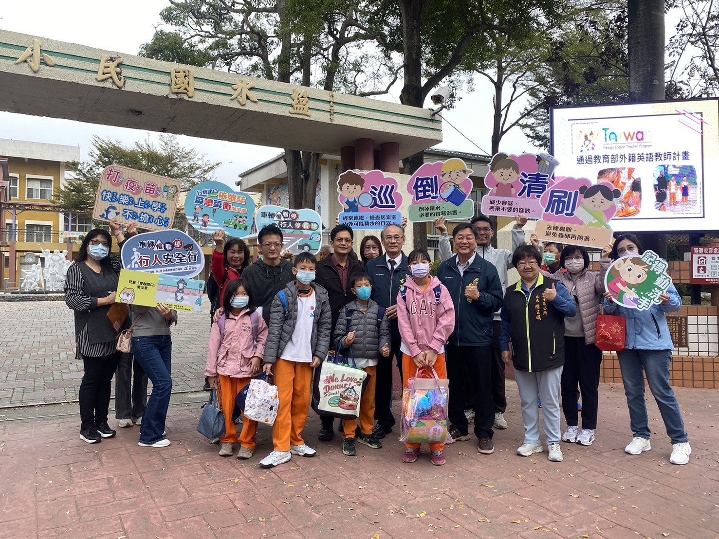 鹽水國小王惠足校長表示,防疫工作不分你我,不限時間,寒假期間雖然學生已經放假,但鹽水國小的防疫工作不停歇,除了動員廚工協助整理環境外,亦徵召校友回母校擔任學生志工進行環境的打掃,各行政處室維持環境巡檢的分工負責區域,在校園中確實執行巡、倒、清、刷四步驟,杜絕病媒蚊孳生的可能性,開學後將持續加強防疫衛教宣導,落實校園孳清工作,全校師生共同營造友善安全的健康校園。