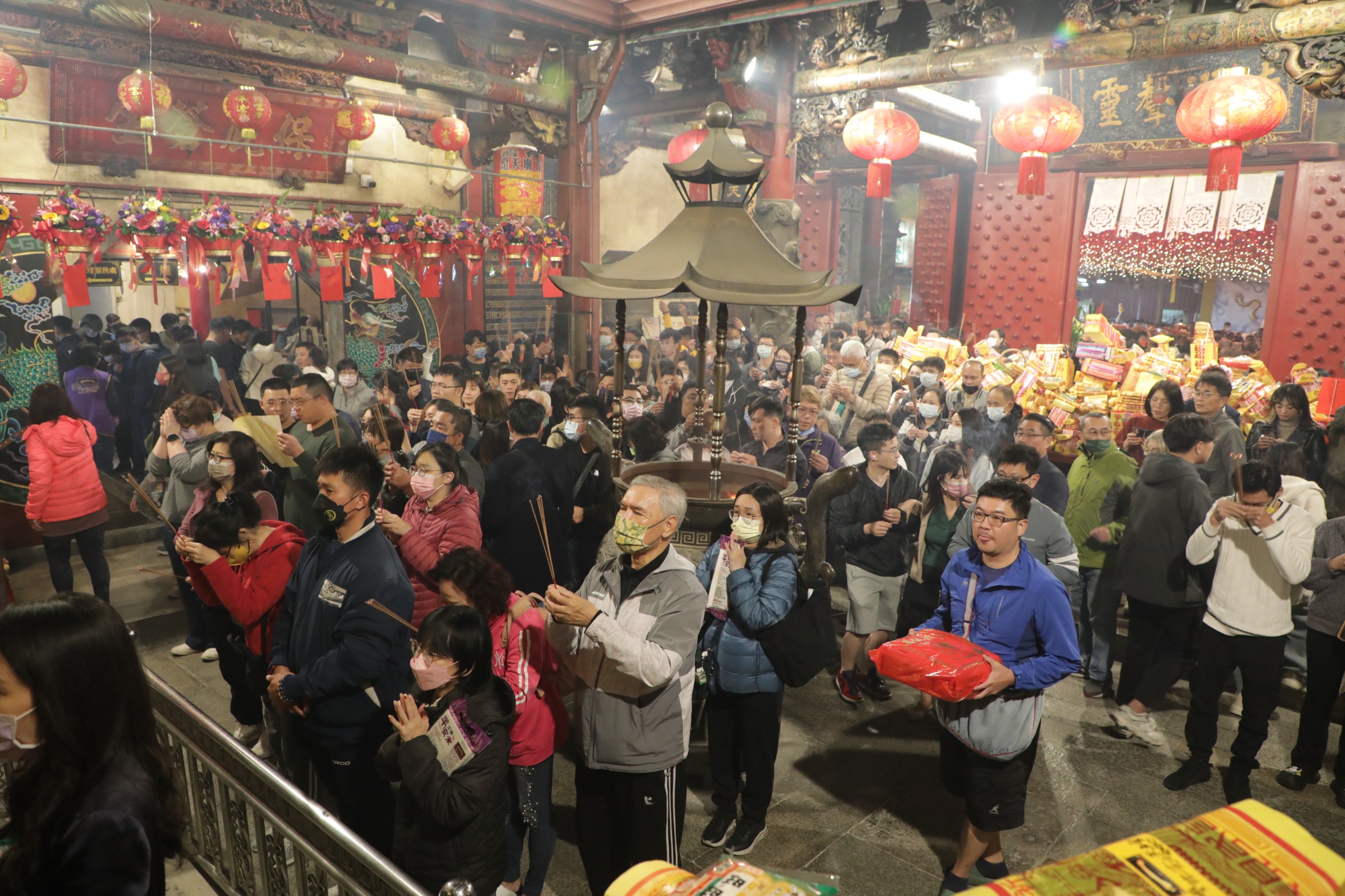 首廟天壇今日依慣例發放的開運紅包,也深深獲得民眾喜愛,排隊領取紅包的民眾在街道上連成一條長長的人龍,從公園路延伸的民權路、忠義路,信徒們紛紛想祈求天公賜好運,開春發大財。