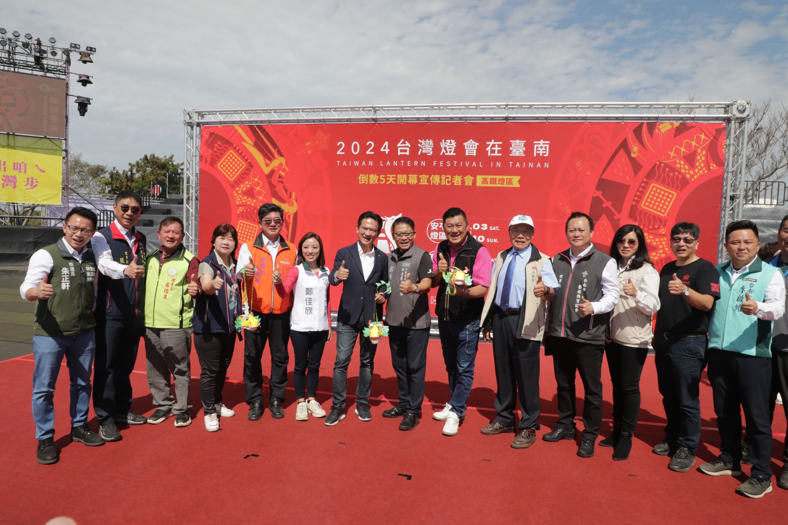 【記者黃思慈/臺南報導】眾所矚目的「2024台灣燈會在臺南」高鐵燈區將於2月24日元宵節盛大開展,臺南市政府今(19)日舉行展前宣傳記者會,臺南市長黃偉哲偕交通部觀光署副署長周廷彰,與到場共襄盛舉的立法委員林俊憲,以及市議員吳禹寰、郭鴻儀、鄭佳欣、陳皇宇、Ingay Tali穎艾達利、林冠維、朱正軒、黃肇輝、許至椿、李啟維,邀請國內外旅客在燈會期間(2/24-3/10)來臺南賞燈、旅遊、吃美食,來場豐富的視覺饗宴。