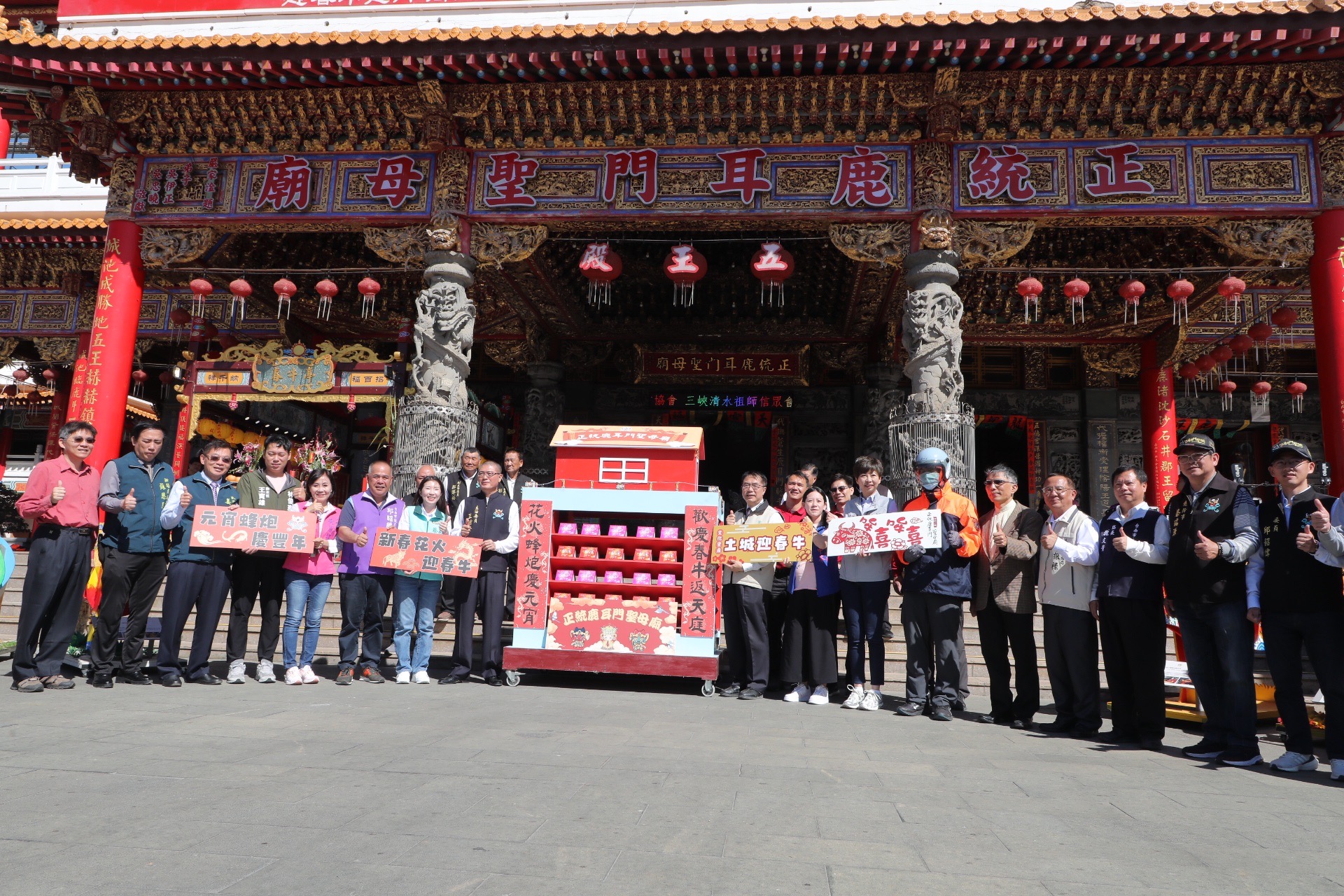 【記者謝富益/臺南報導】正統鹿耳門聖母廟高空煙火可說是台灣元宵節最知名的煙火秀之一,每年吸引數十萬人前往朝聖,今(20)日台南市長黃偉哲親臨活動前記者會,與鹿耳門聖母廟主委王增榮等貴賓共同燃點迷你蜂炮城,祈求慶典活動順利圓滿。