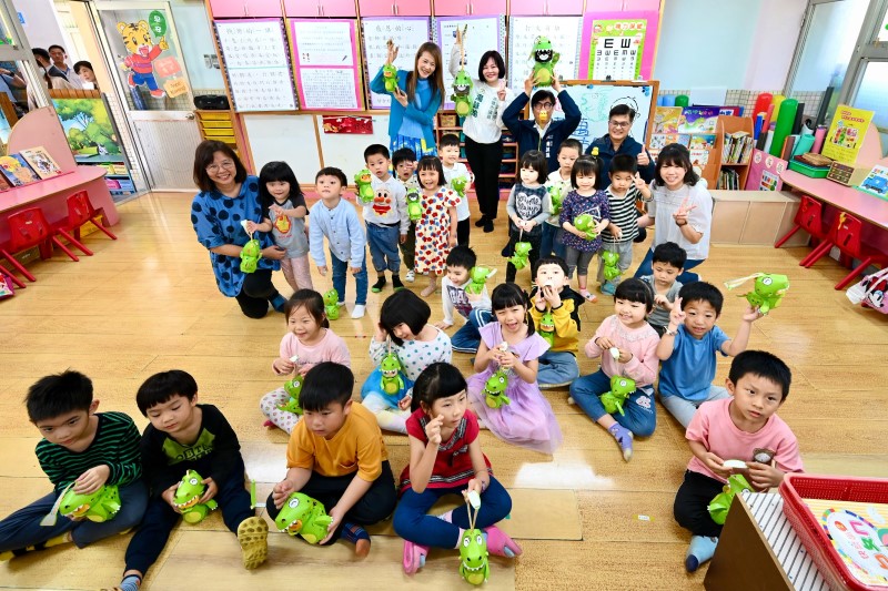 【記者張淑慧/高雄報導】高雄市政府為歡迎學生們寒假後快樂回到校園,特別為全市國小及幼兒園學童準備了限定版的可愛「小萌龍呆腦獸(DINOSAUR)」小提燈作為開學禮物,市長陳其邁今(20)日以校友身份至新興國小及附設幼兒園視察發放情形,向小朋友介紹可愛造型小提燈,小朋友也熱情回應,直喊「謝謝邁邁市長」,互動畫面有趣溫馨,也與幼兒園巧虎班小朋友一一合影留念,他鼓勵大家於2/25提著呆腦獸小提燈至愛河灣來看黃色小鴨展覽。