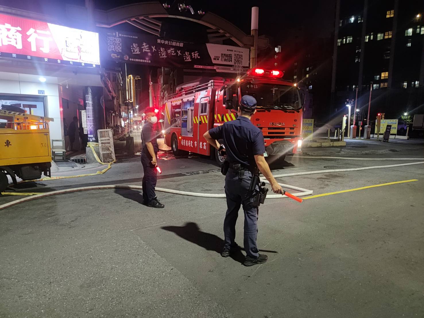 高雄玉竹商圈大火,員警已管制周邊道路。(記者翻攝)