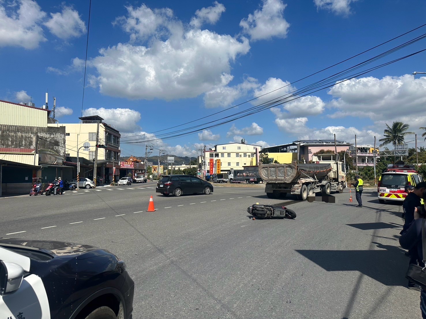 警方到場處理事故,周男和張男均無酒駕行為,初步研判周男駕駛砂石車右轉彎未讓直行車先行,依違反道路交通管理處罰條例第48條第1項第6款,可處600元以上1800元以下罰鍰,以及右轉彎未先駛入外側車道,違反道路交通管理處罰條例第48條第1項第4款,可處600元以上1800元以下罰鍰等規定,訊後已先依過失致死罪嫌將周男送辦,詳細肇事原因後續警方還要進一步釐清。