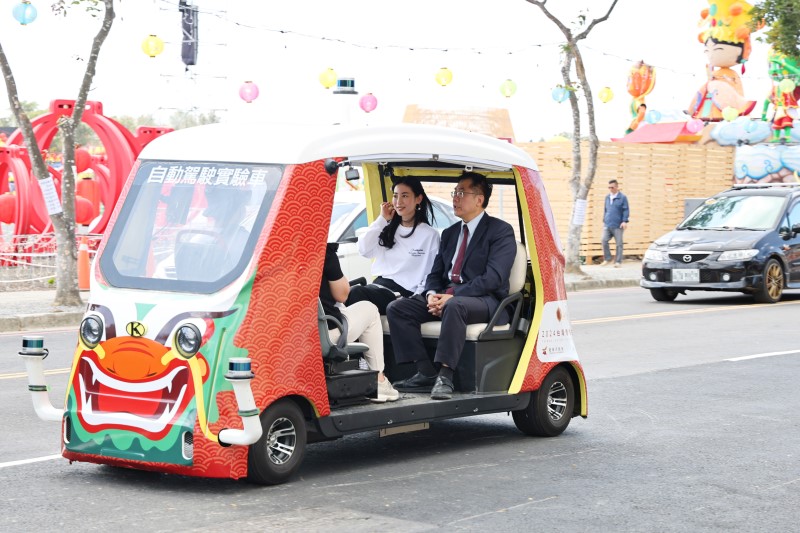 黃偉哲市長表示,全國首座以自駕技術為主的測試場域就在臺南沙崙科學城,為使燈會結合科學城特色,特別規劃自駕車搭乘體驗,透過無方向盤、無司機的AI駕駛模式,搭配車輛專屬的高精地圖,展現專業自駕技術,也讓台灣自駕技術迎向新里程碑。