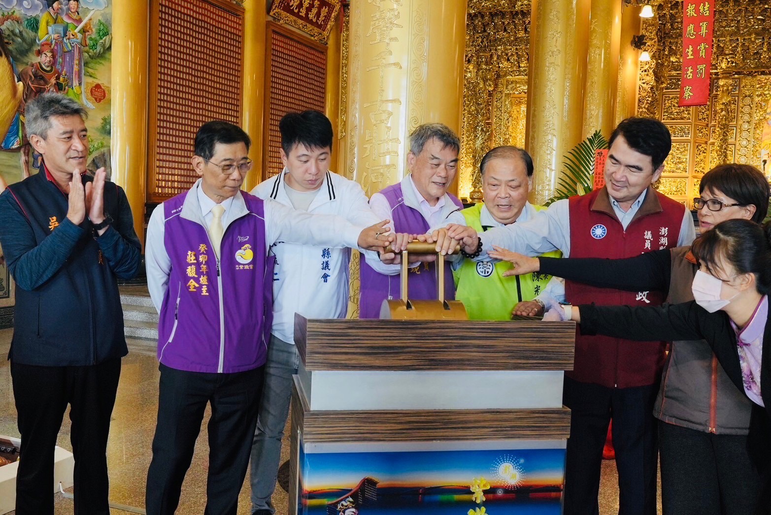 鎖港紫微宮、興仁懋靈殿23日舉辦點燈儀式活動,為元宵慶典揭開序幕。澎湖縣長陳光復、澎湖縣議會議長陳毓仁出席點燈儀式,祈願風調雨順、闔家平安、元宵節活動圓滿成功。