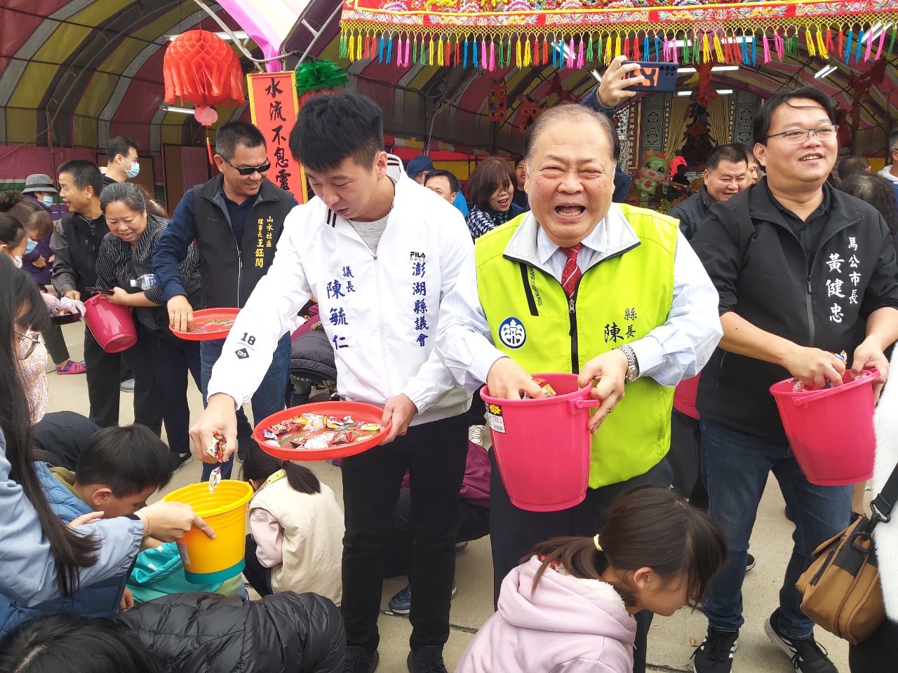 全澎一起鬧元宵,陳光復除了赴山水上帝廟外,也馬不停蹄前往內垵、外垵、烏崁等參與各廟宇元宵慶典。