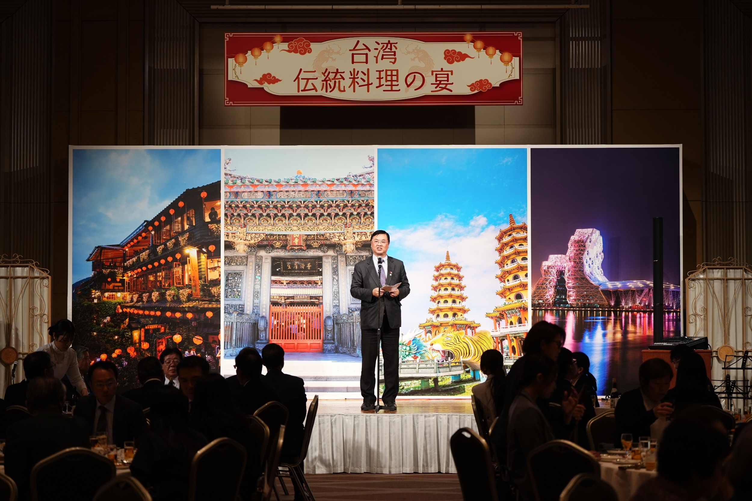 高雄市副市長羅達生率隊訪問日本友好城市熊本縣、熊本市,晚間參加由熊本縣商工會議所聯合會首度舉辦的「台灣傳統料理宴會」。(記者翻攝)