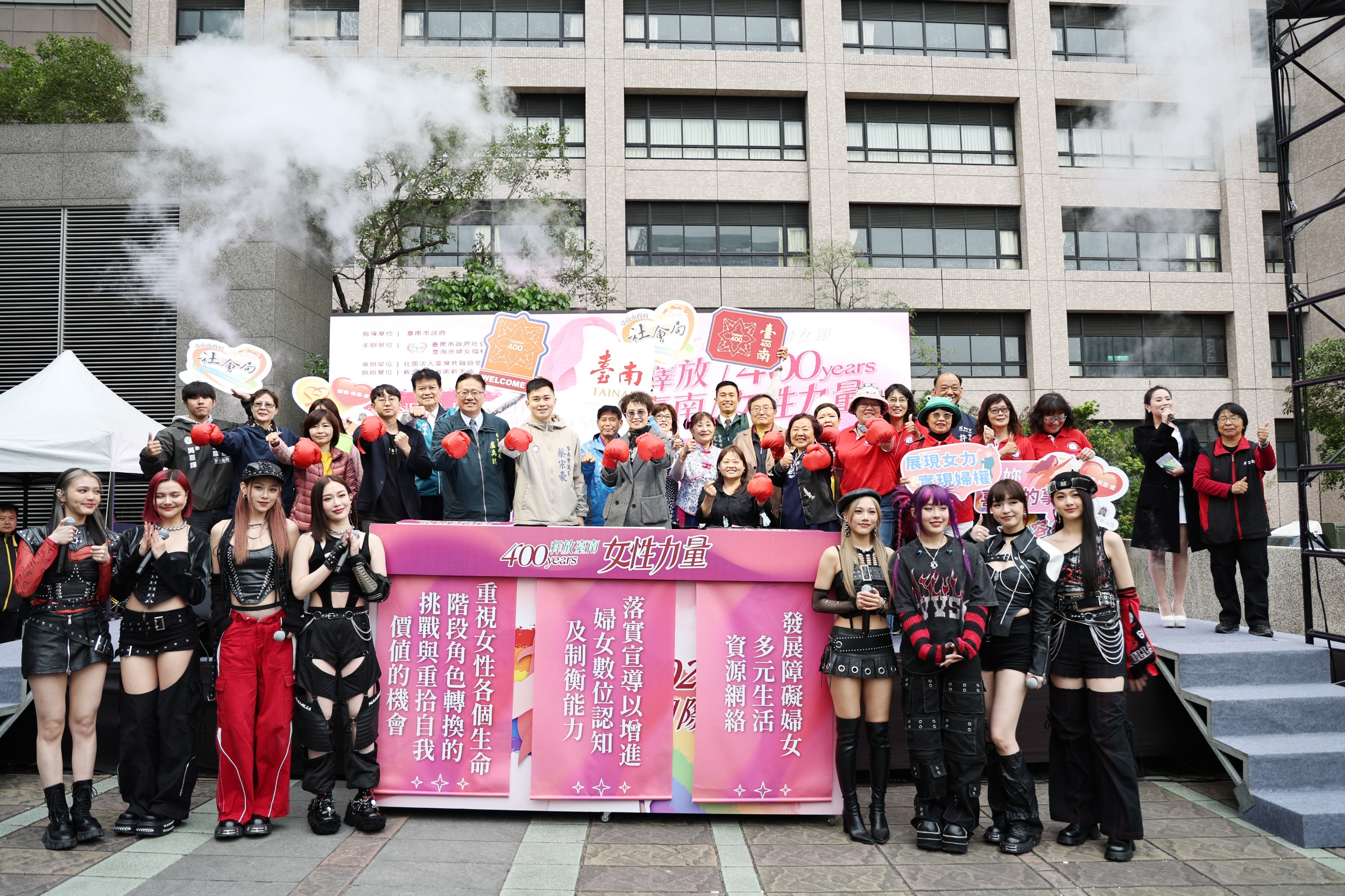 (記者黃思慈報導)為響應國際婦女節,同時讓更多民眾瞭解市府推動的各項婦女權益與服務,台南市社會局今(2)日舉辦「歡慶2024國際婦女節-釋放台南400年女性力量」活動,由台南副市長趙卿惠舉行啟動儀式。趙副市長戴上拳擊手套與議員蔡宗豪、沈震東、許至椿,象徵和市民同一陣線齊心擊倒性別偏見、打破歧視,並宣示台南市致力提升婦女福利,推動女性族群間的平權倡議、社會參與、性別平等與多元族群,呼籲女性朋友從心覺醒,相互激勵共融,推動善與愛的正向循環。