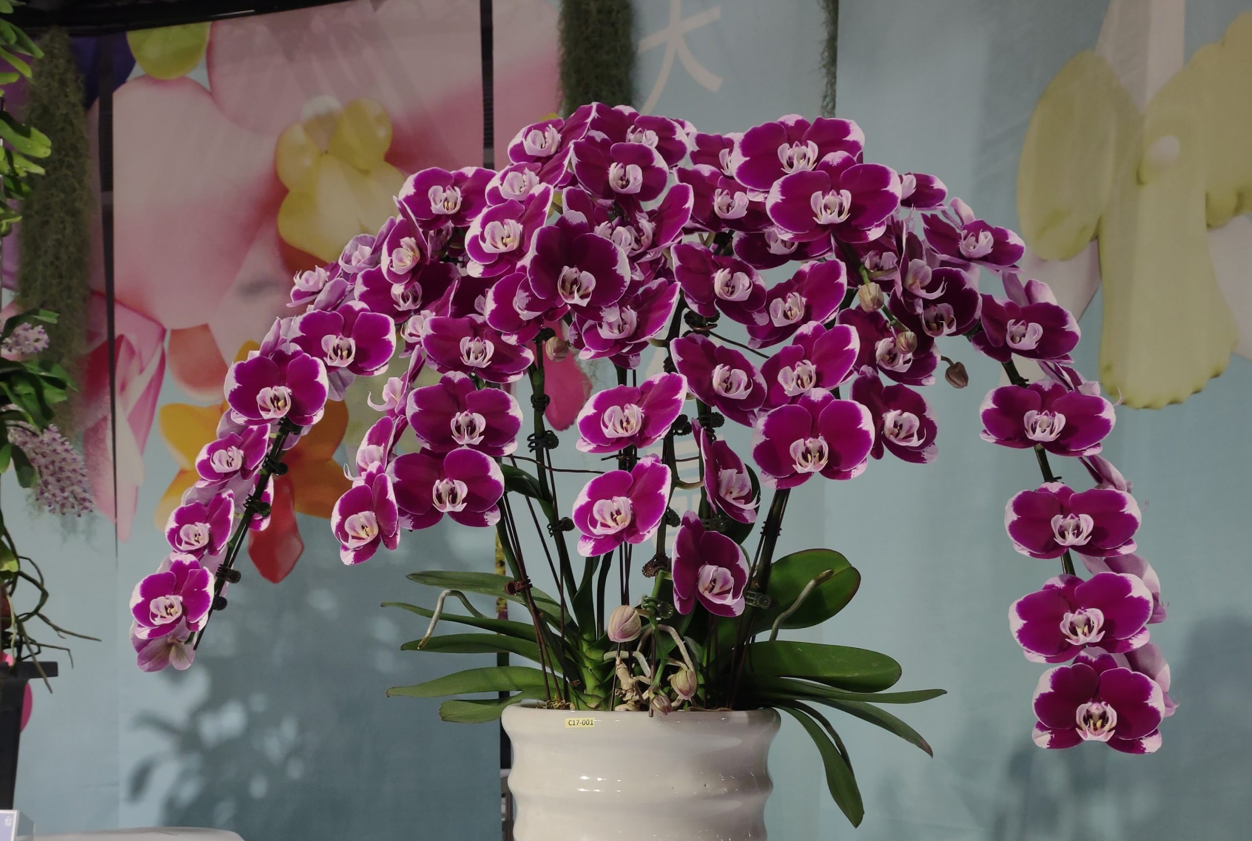 除了全場總冠軍花,各組冠軍也非常吸睛!最佳原生種獎由鳳尾蘭拿下,同時也是萬代蘭亞組冠軍,長長的枝條、整齊的往下生長,猶如鳳凰的長尾巴隨風搖曳,本株超過150公分的植株開花1836朵,尚有數百朵的花苞未開,得獎花主為天成蘭園的簡天成。