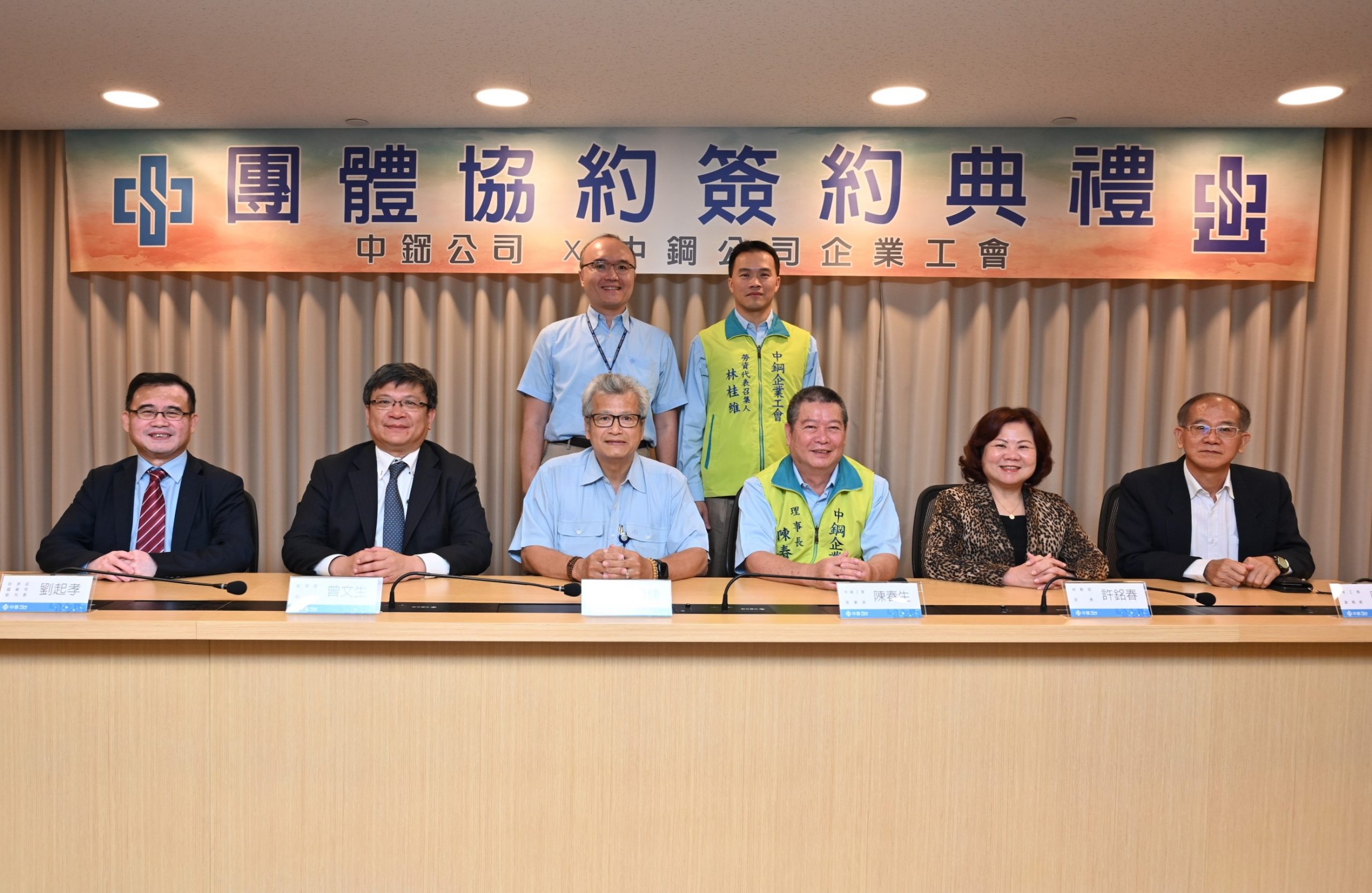 中鋼企業工會與中鋼公司於今(3/15)日上午11時,假中鋼集團總部大樓舉行第六次團體協約簽約典禮,由中鋼企業工會陳春生理事長及中鋼公司翁朝棟董事長代表簽署,勞動部許銘春部長、經濟部曾文生次長、國營司劉起孝副司長、高雄市政府勞工局陳石圍副局長等貴賓親臨見證,典禮過程展現和諧的勞資氛圍,雙方將共同信守協約規範,奠定中鋼永續經營的基石。