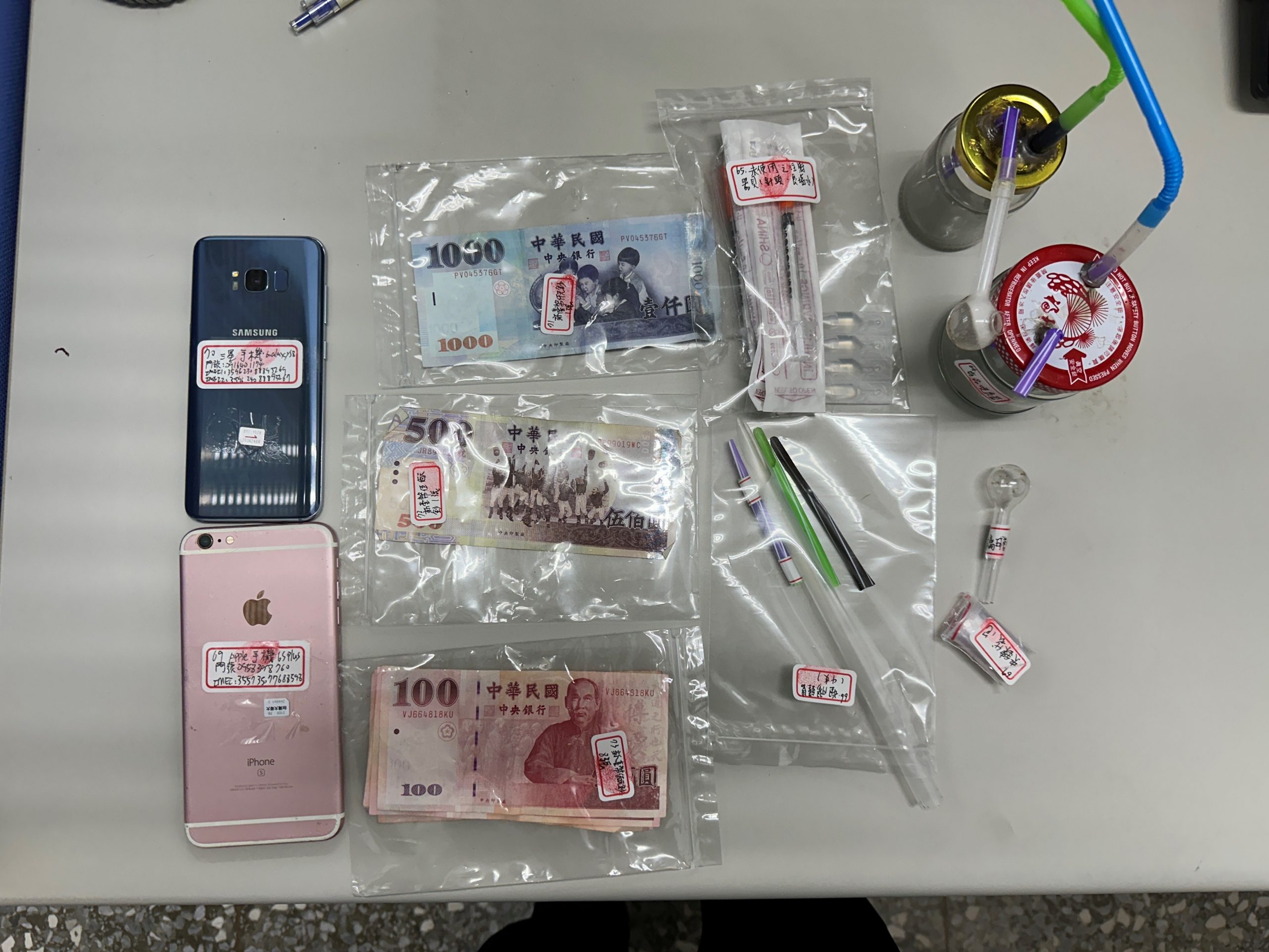 (二)案經數月派員蒐證調查及監控,掌握嫌疑人林○○、陳○○及林○○等3人真實身分及藏匿處所,認時機成熟,循線在上記偵破時、地,將上述3嫌拘捕到案,並起獲第一級毒品海洛因67小包(毛重共計30.06公克)、第二級毒品安非他命37小包(毛重共計21.46公克)、毒品吸食工具、疑似販毒贓款3萬8,600元及販毒聯絡使用之行動電話等犯罪證物,全案依涉嫌違反毒品危害防制條例罪嫌偵辦。