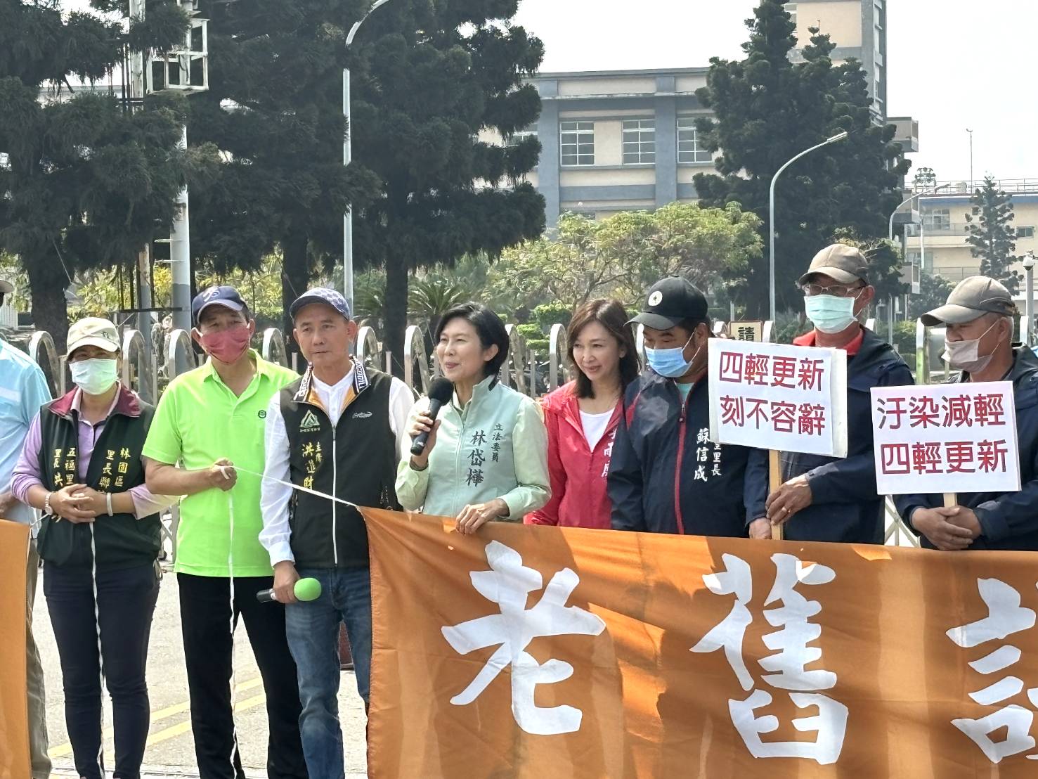 高雄市林園區24里長也持抗議布條、標語,要求「四輕更新刻不容緩」、「四輕更新520前拍板定案」。(記者蘇小刀攝影)