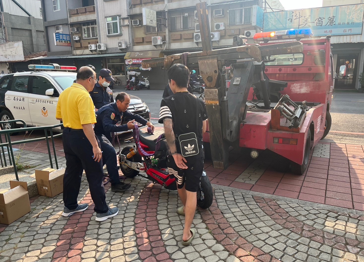 岡山分局警察火速追查微電車改裝車輛警依法取締偵辦。 (高雄市岡山警分局提供)