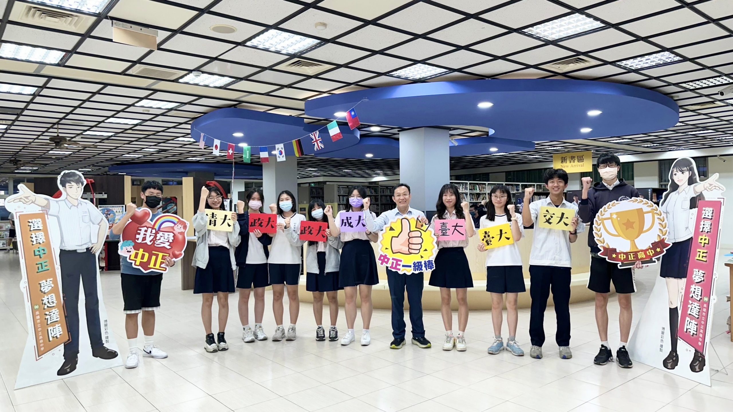政治大學則有孫艾彤同學(青年國中)錄取法律系、陳法蹂同學(陽明國中)錄取中文系、文亭云同學(五福國中)錄取傳播學院不分系,三位同學高一以來均以政大做為第一志願,此番順利圓夢,心中均相當激動!