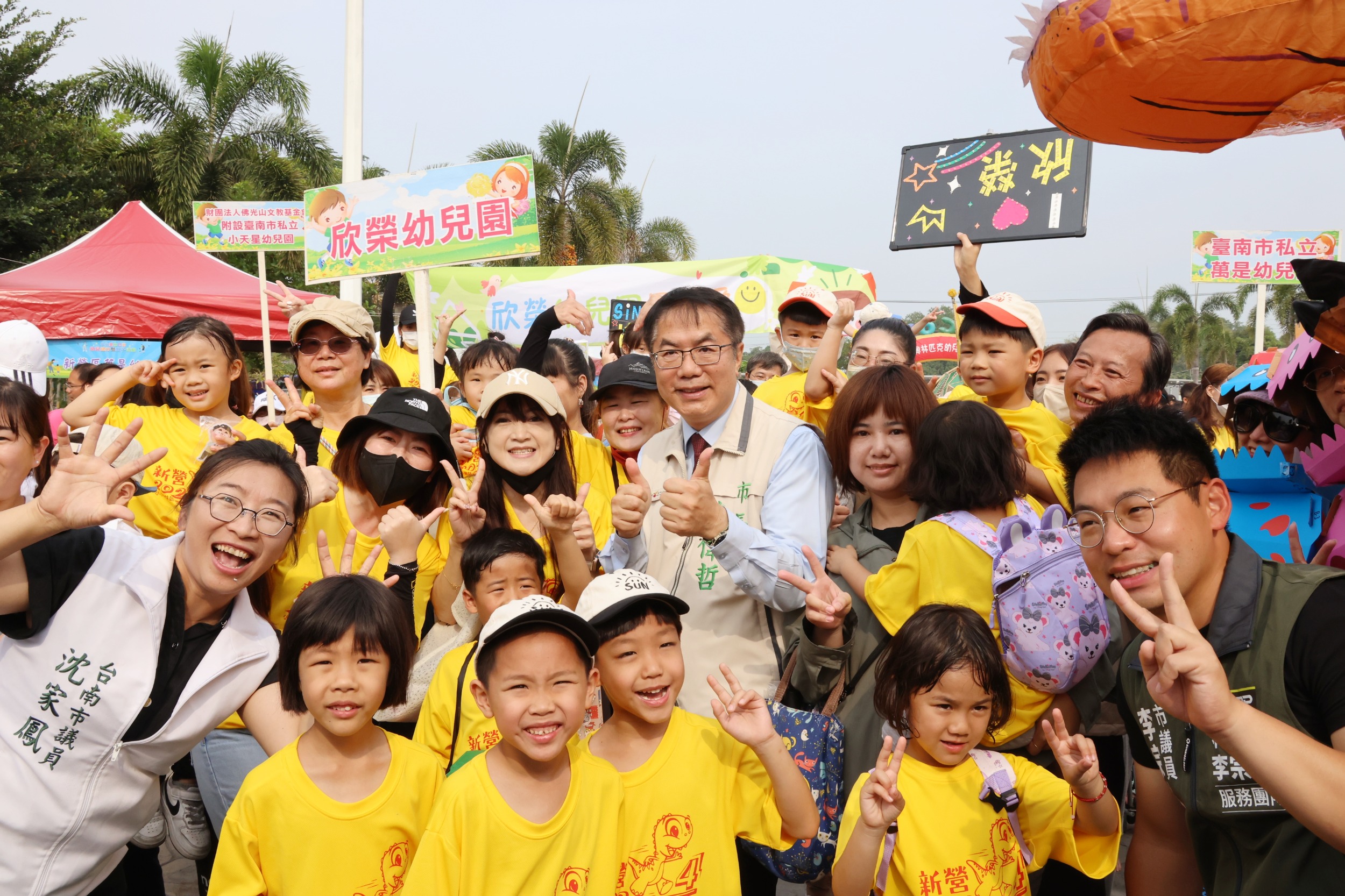 黃偉哲市長表示,很高興在天鵝湖舉行小小奧林匹克幼兒健行暨親子活動,一方面響應淨零碳排活動,一方面讓大小朋友健康親子健走,希望帶給孩子歡樂悠閒的週末假期。