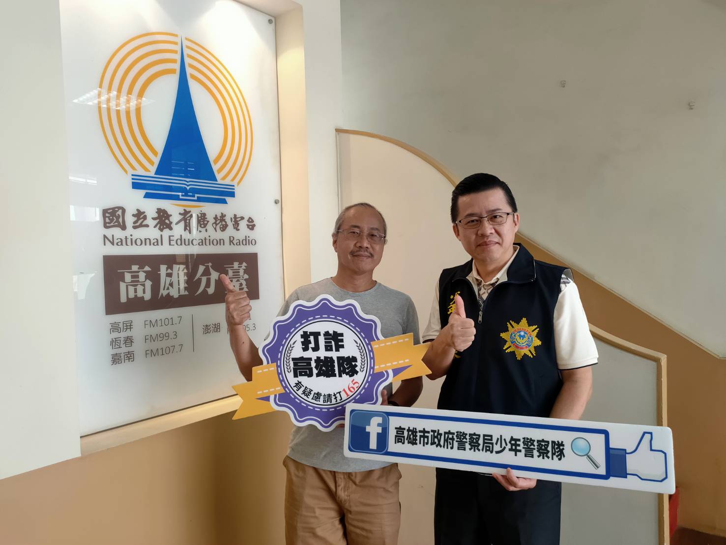 少年警察隊隊長陳仁正親自到教育廣播電台分享實際案例。(高雄市政府警察局少年警察隊提供)