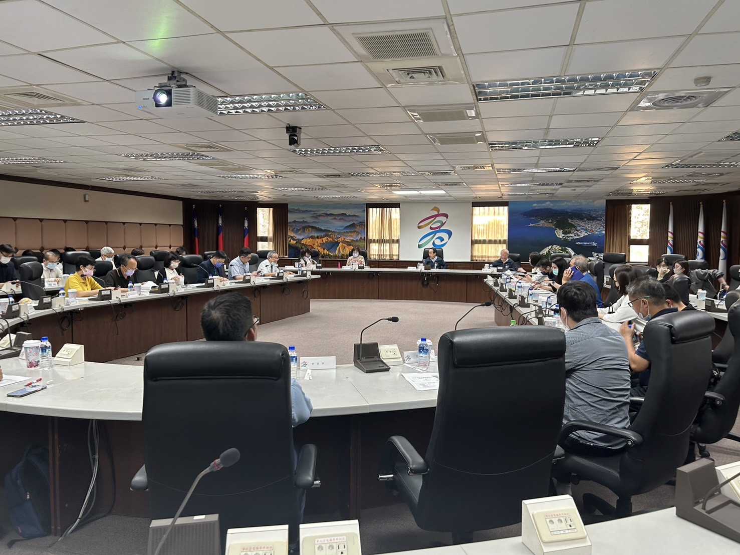 林副市長欽榮(左)主持召開高雄市第3次食安小組會議暨食安專家諮詢會議,衛生局黃志中局長進行說明(右)。(高雄市政府衛生局提供)