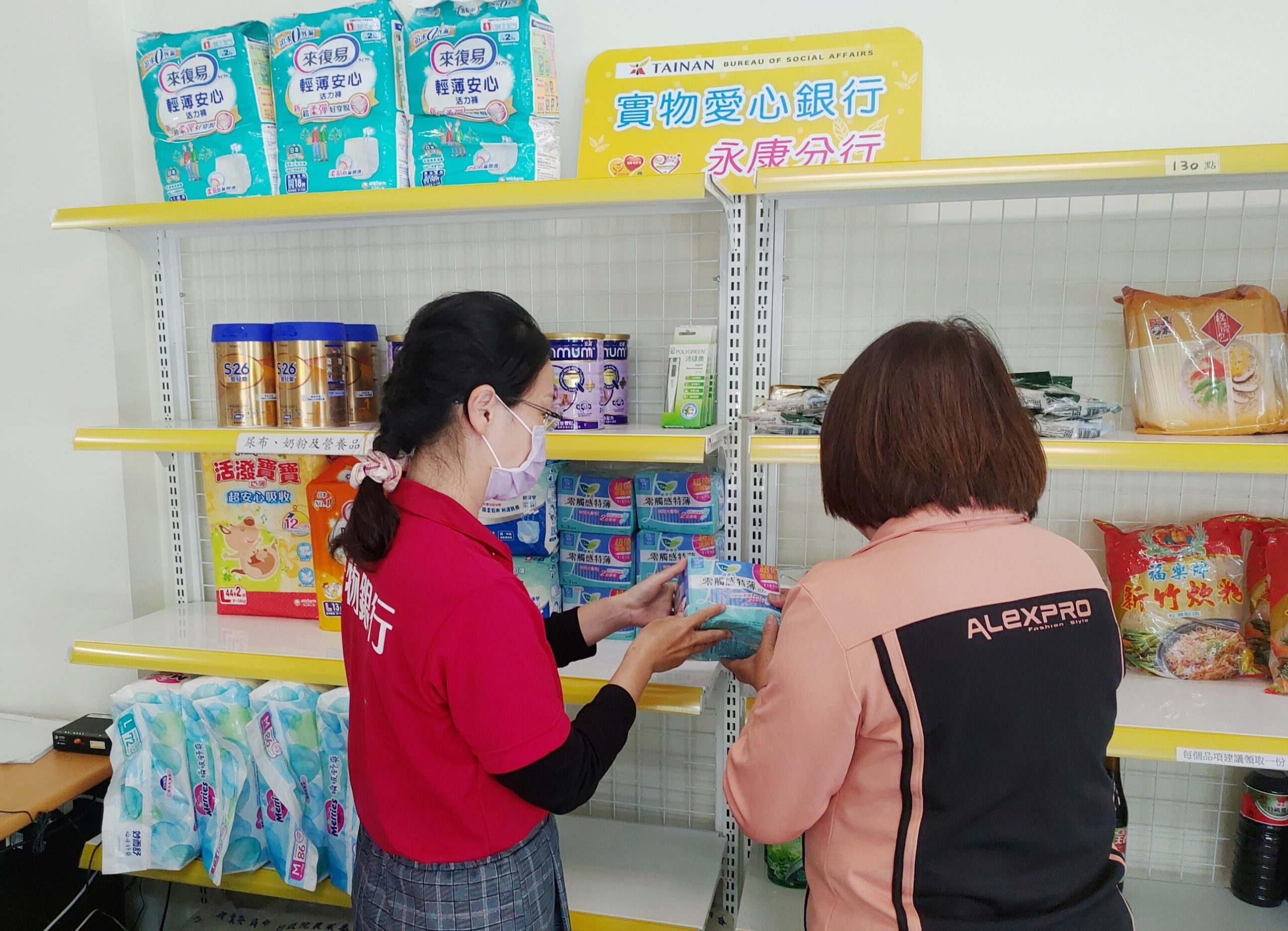 台南市實物銀行-領取生理用品。(台南市政府社會局提供)