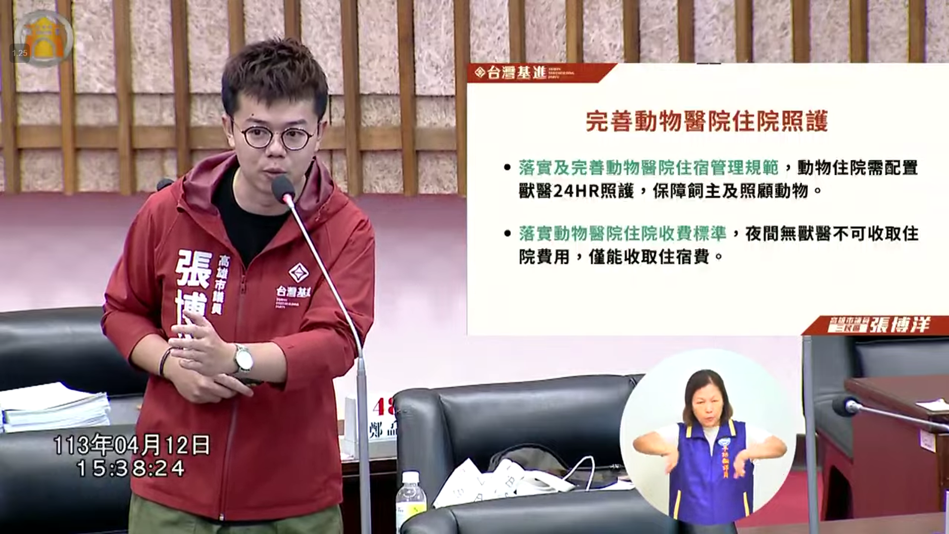 市議員張博洋質詢指出,應完善動物醫院住院照護。(記者翻攝)