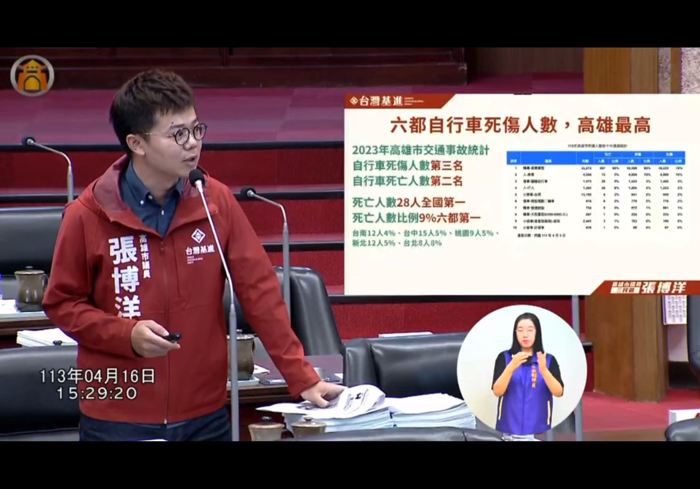 高市交通事故自行車死亡人數僅次於機車,排名第二,市議員張博洋盤點五大問題要求交通局改善。(記者翻攝)