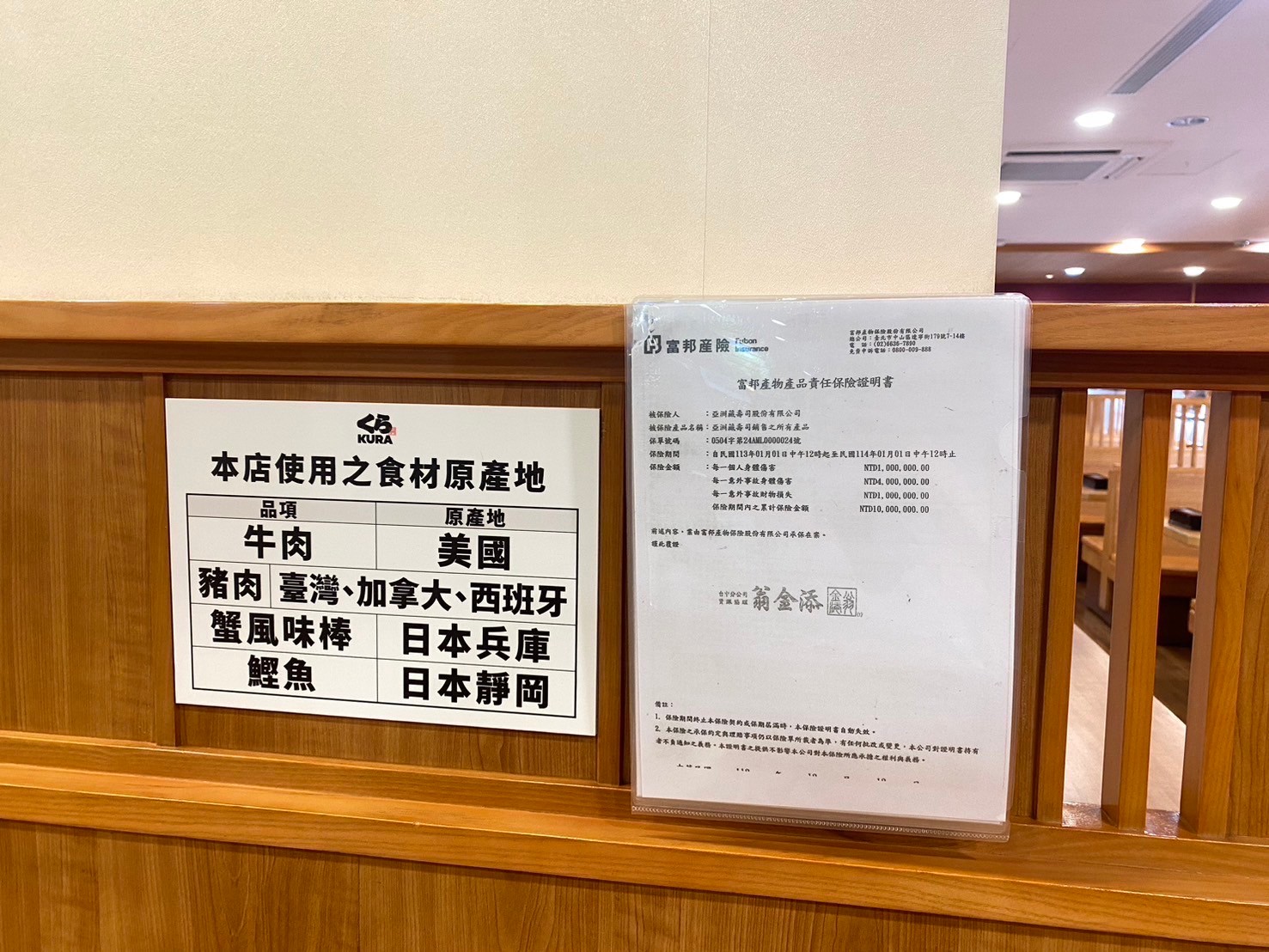 百貨公司美食街揭露產品責任險情形。(高雄市政府衛生局提供)