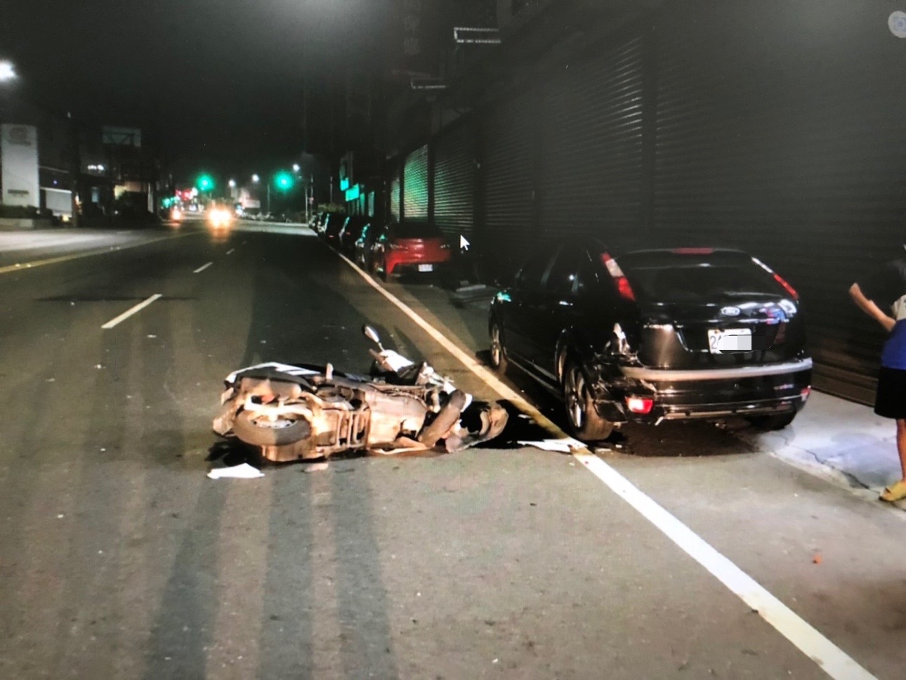 現場為林園分局呂姓偵查佐下班後騎乘摩托車擦撞一台停於路邊自小客,呂員多處受傷送醫救治,後因呂員髖關節脫臼,經鳳山醫院醫師評估需緊急開刀避免神經遭壓迫造成永久性損害,家屬評估後選擇轉院至義大醫院進行後續手術及住院處理。