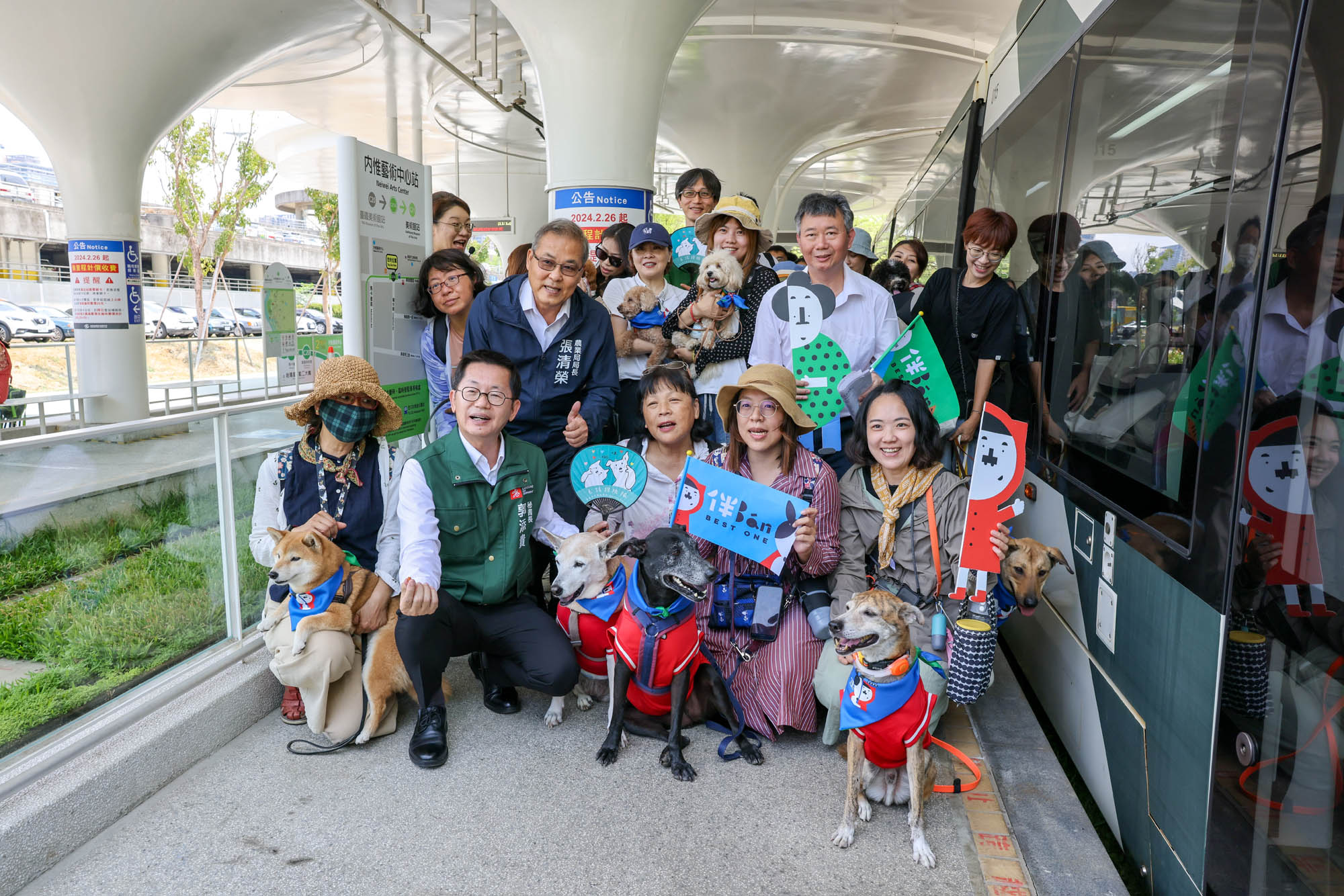 首度開放輕軌車廂讓20組毛孩家庭搭乘。(高雄市政府動保處提供)