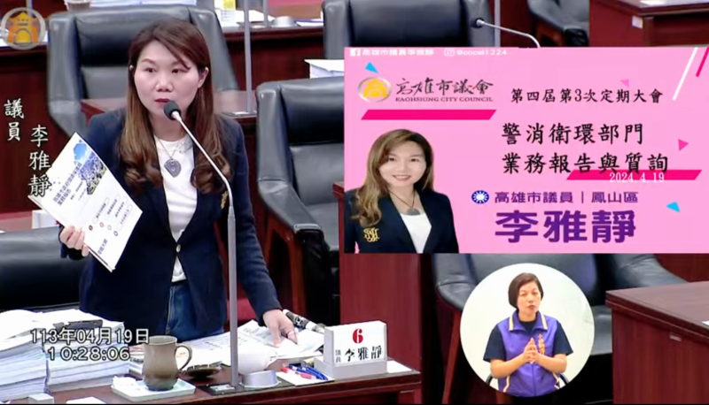 高雄市議會今天進行警消衛環部門質詢,市議員李雅靜指出,市府為達成「2050淨零排放」願景,全力補助客運業者將燃油公車汰換成電動公車,目前電動公車比例全台第一。李雅靜表示,電動公車確實能起到節能減碳作用,為高雄嚴重的空汙問題提供解方,值得肯定。但她很擔憂,電動車最大風險就是電池爆炸起火,依現在的消防救災能力,能否將電池起火立即撲滅?若滿載乘客,發生火燒車事件,乘客能否順利逃生?