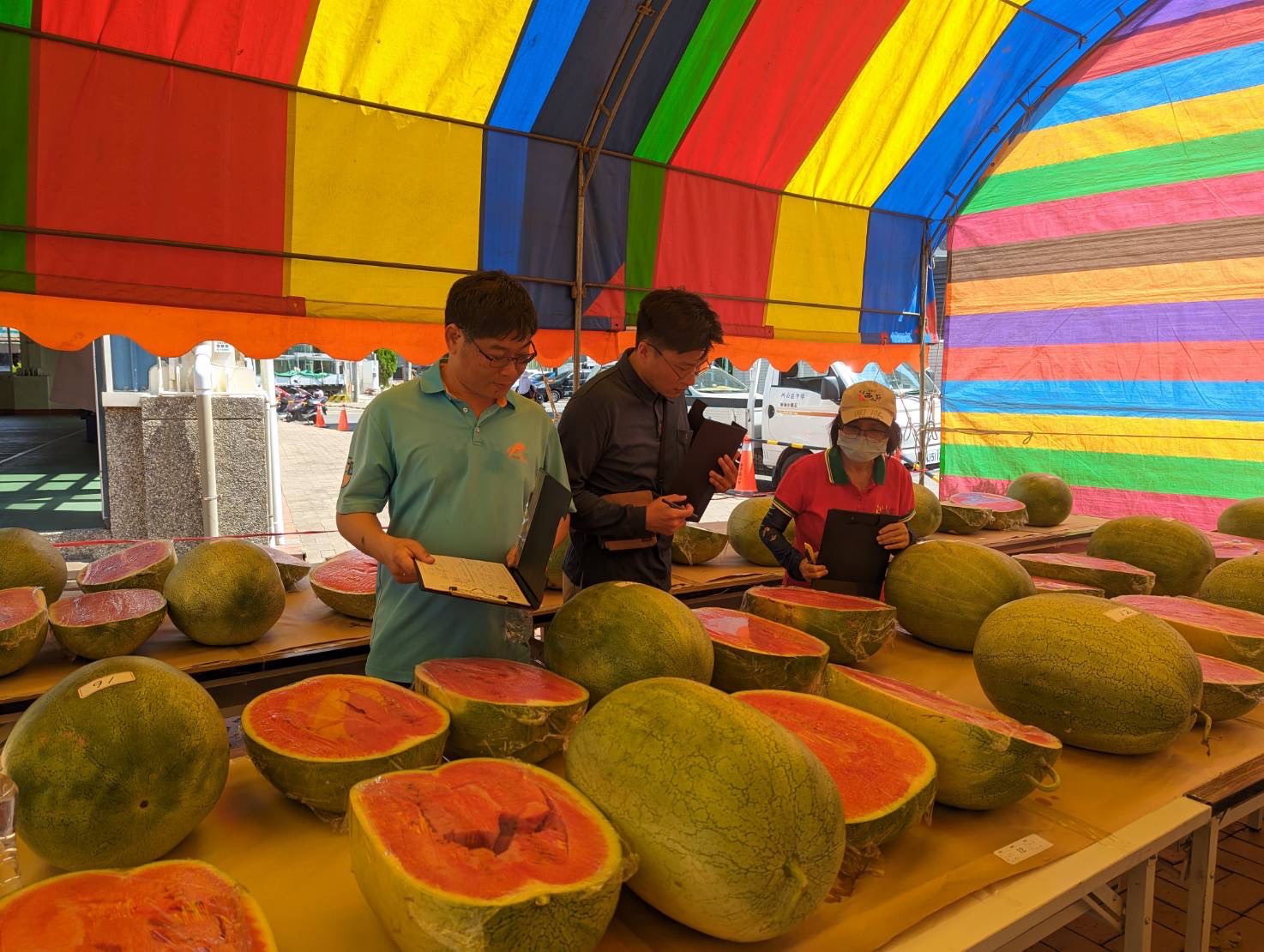 農業局長李建裕說明,臺南市西瓜產量排名全國第二,種植面積約1,500公頃,學甲區為重要產區之一,作種植面積約30公頃,本地西瓜種植品種以「華寶」為主,因為鄰近八掌溪,且土壤為帶有鹽分之砂質土壤,合宜的生長環境讓此區的大西瓜賣相、品質有口皆碑。今年因颳南風較往年長,導致氣溫偏高,所以西瓜的個頭偏小,平均重量約在20台斤,但甜度仍高達14-15度,口感汁多甘甜,後續市府將與學甲公所共同協助農友行銷,提升瓜農收益。