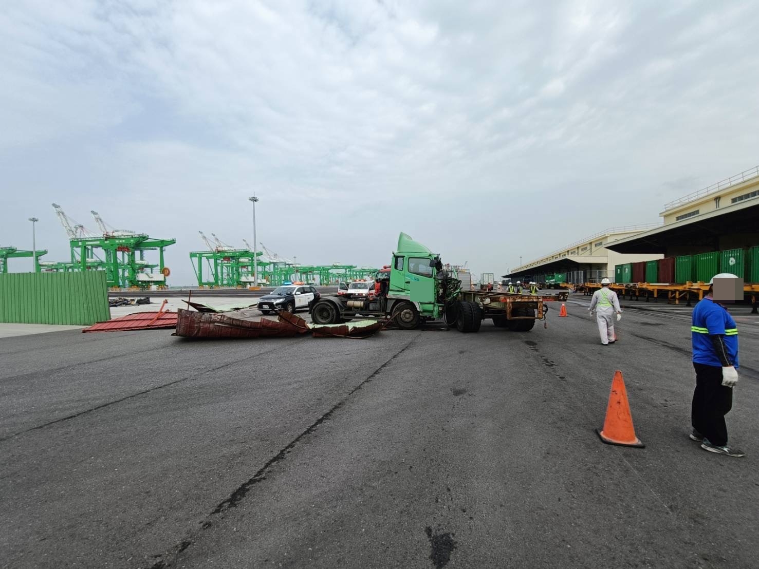 高雄港洲際碼頭物流倉儲區交通事故。(高雄港務警察總隊提供)