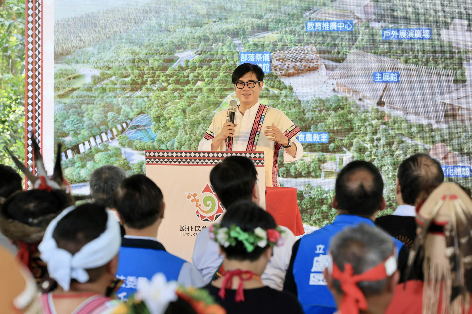 陳建仁指出,原博館有8個縣市爭取,最後由高雄勝出。他回想參觀紐西蘭原博館,除了文物還有數位科技,讓他印象極為深刻,分享臺灣的原民文化受到世界重視,認為應該把眼光放遠,將臺灣、全世界的原住民族文化都能夠發揚光大,日後原博館是屬於所有族群、全世界的,也會是國際上南島語族重要的博物館。