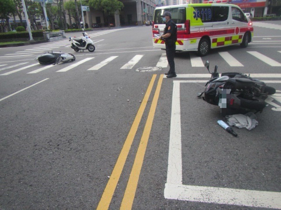 待轉區起步機車遭撞。(高雄市苓雅警分局提供)