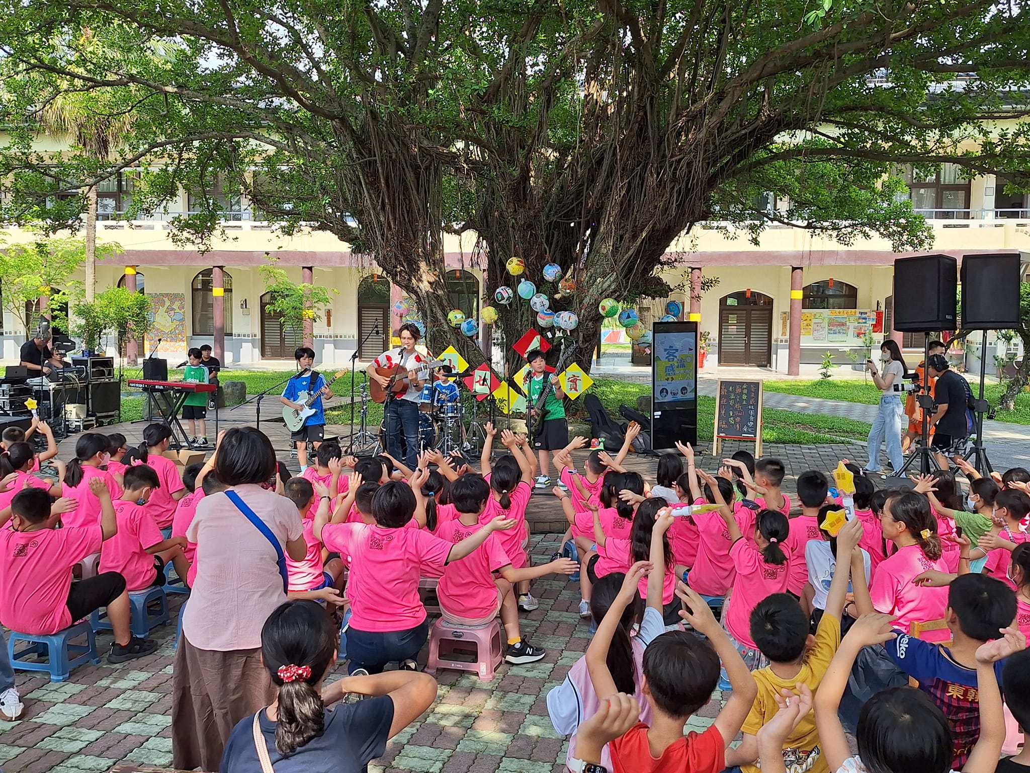 2024客流感校園音樂巡演,由客家金曲獎得主羅文裕、彤溫岑二重唱、J HALL樂團來駐唱,客家音樂嗨翻天。 (黃山高攝)