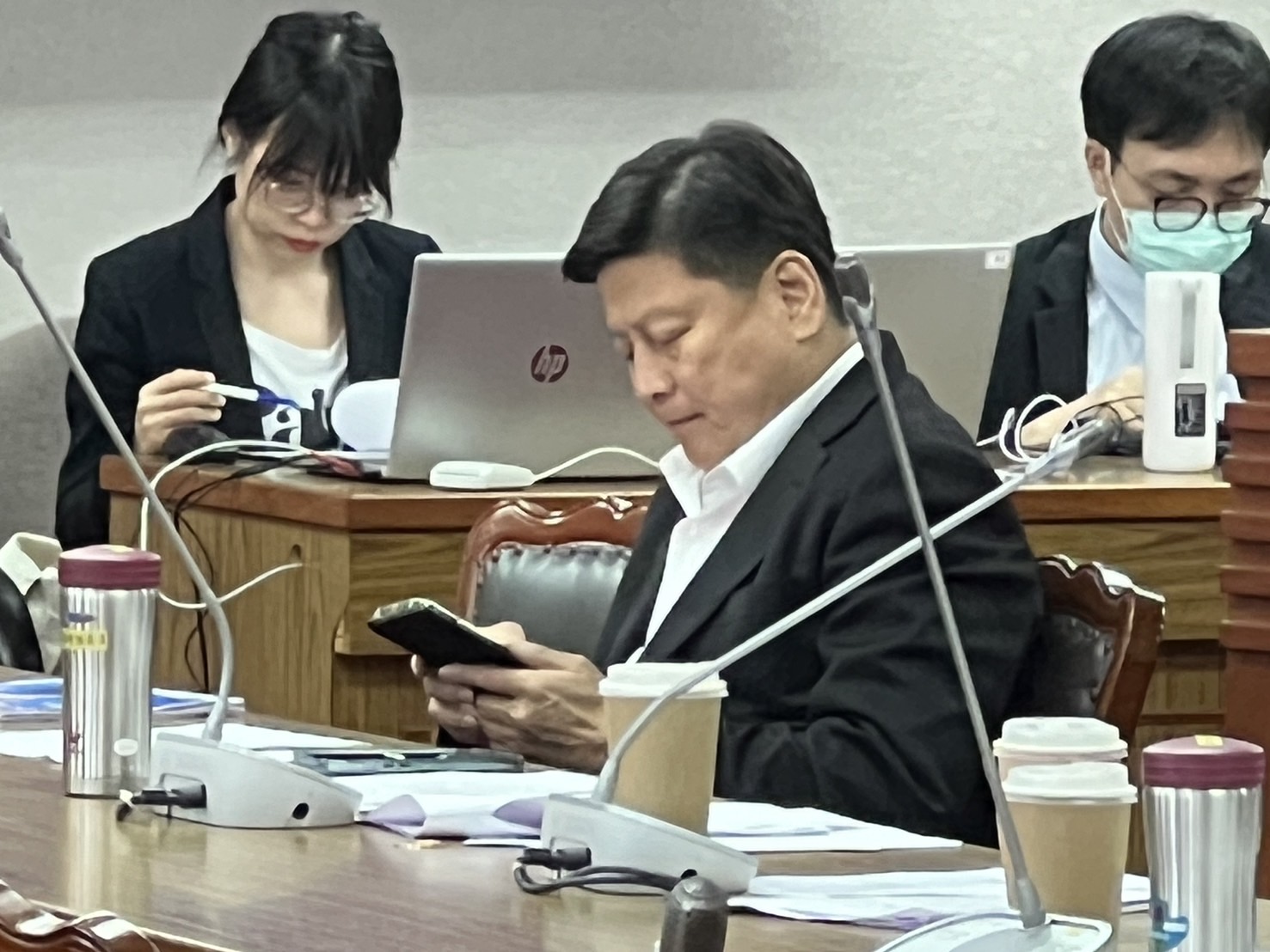 國民黨羅智強委員表示,台下委員座位前方都有一個桌上型的麥克風,恐干擾台上正在詢答的委員,故提案要求設置桌上型麥克風的統一消音開關,平常由召委管理關閉,例外情形才開啟,委員們若要發言,就上台發言,以提高會議效率。