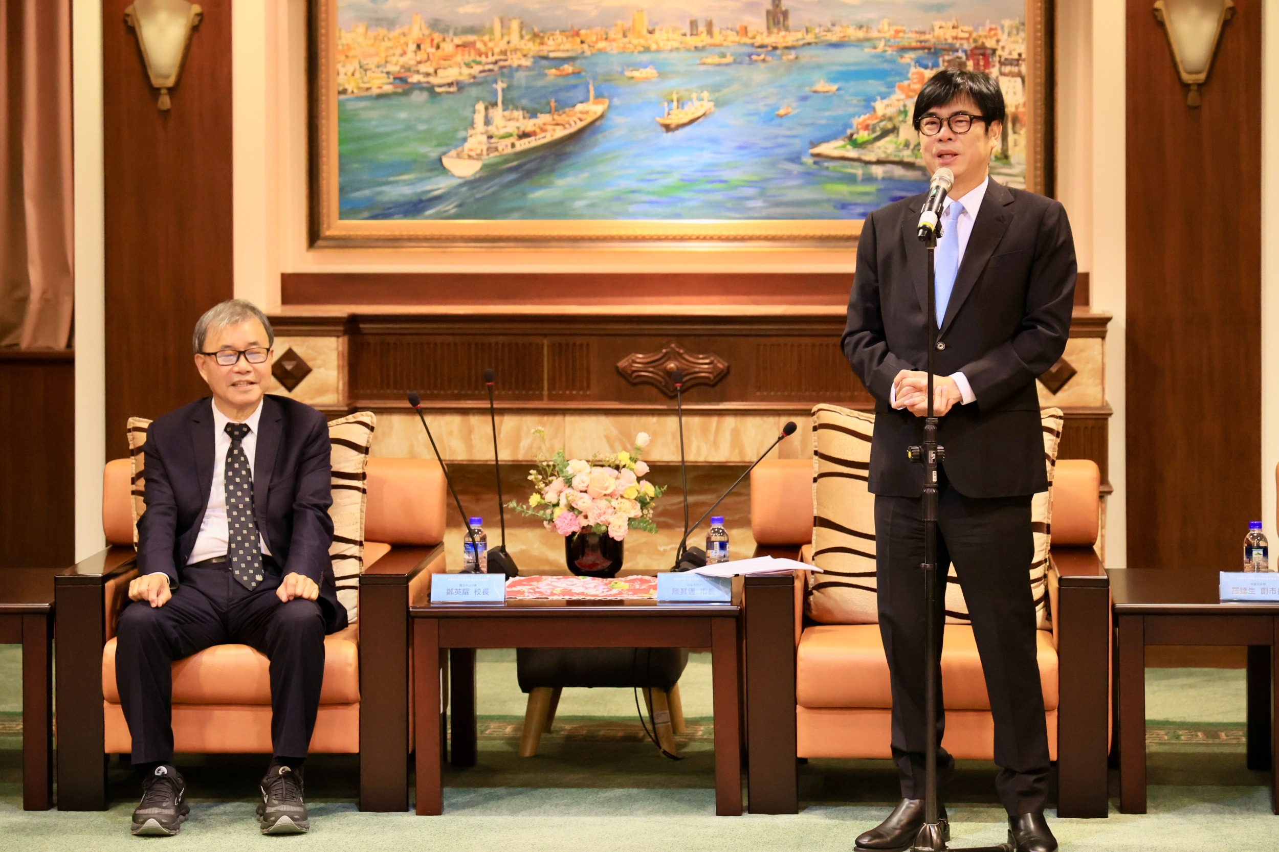 陳其邁也向將就任教育部長的鄭英耀校長請命,期許鄭部長多照顧中山大學,力爭南部的教育資源,認為高教資源不應重北輕南,尤其南部醫學、資訊或是AI半導體人才濟濟,醫療學術加上AI領域科學應用、中山大學與市府聯手可謂強強配;市府定會力挺中山大學、密切合作,相信可以後發先至、迎頭趕上,也期許未來中山大學朝向醫學院及附設醫院的規劃,對提升高屏地區學術研究或醫療服務,至關重要。
