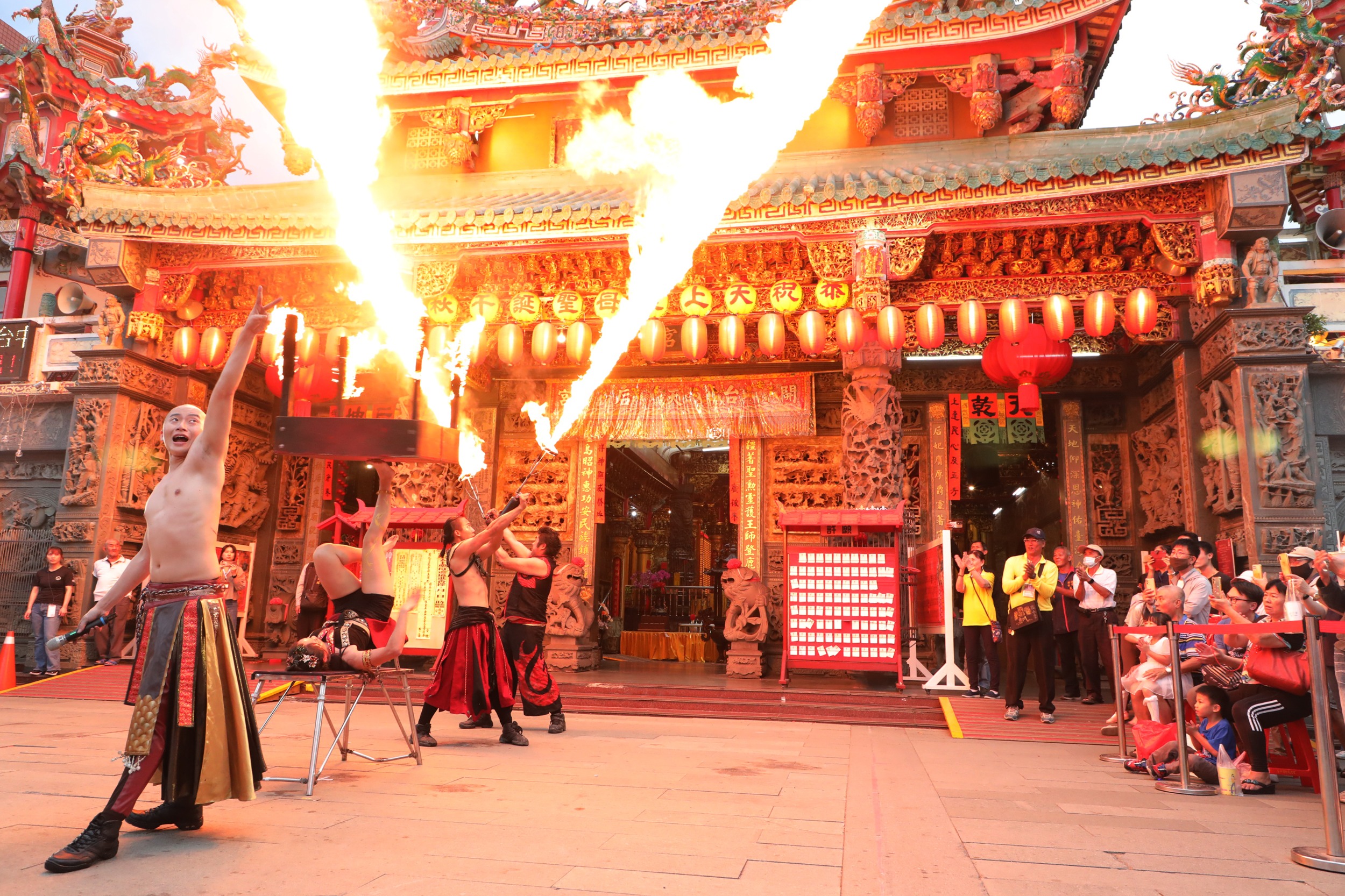 副市長葉澤山代表市長黃偉哲於安平開台天后宮進行龍舟點燈儀。(記者翻攝))