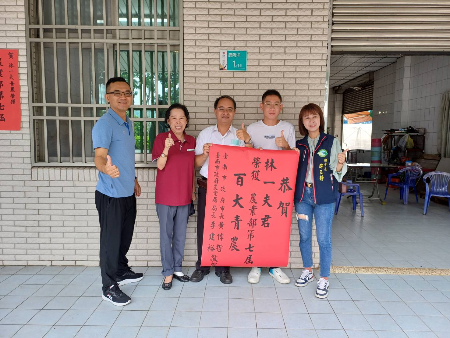 農業局張貼紅榜祝賀陳南聖入選第7屆百大青農。(臺南市政府農業局提供)