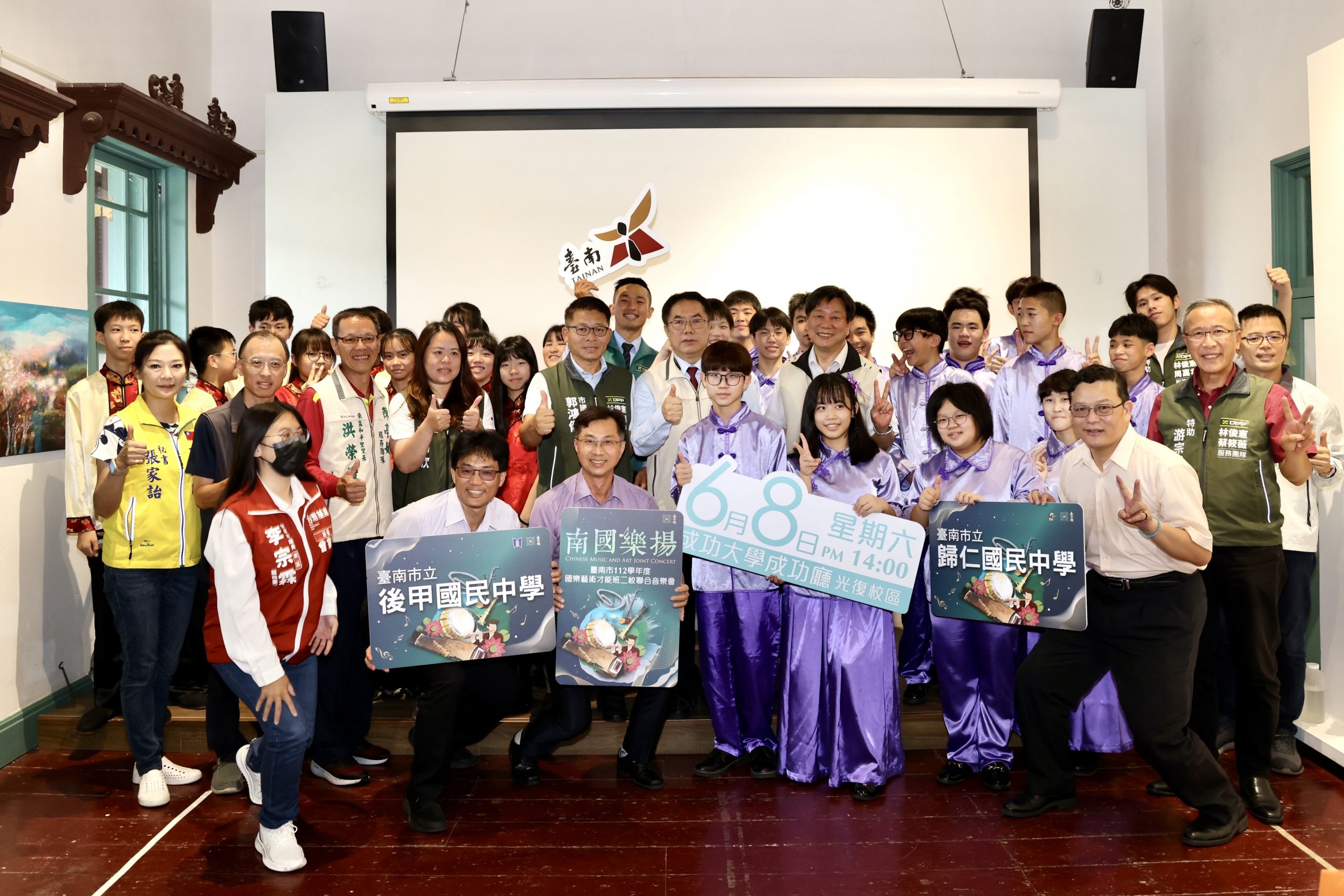 台南市112學年度國樂藝術才能班聯合音樂會「南國樂揚」將於6月8日下午2時在成功大學成功廳登場,今(23)日下午於知事官邸生活館2樓舉辦宣傳記者會,市長黃偉哲肯定後甲國中和歸仁國中兩校打造良好國樂學習環境,本次強強聯手舉辦聯合音樂會,精彩可期,歡迎大家一起來參與這場音樂盛宴。