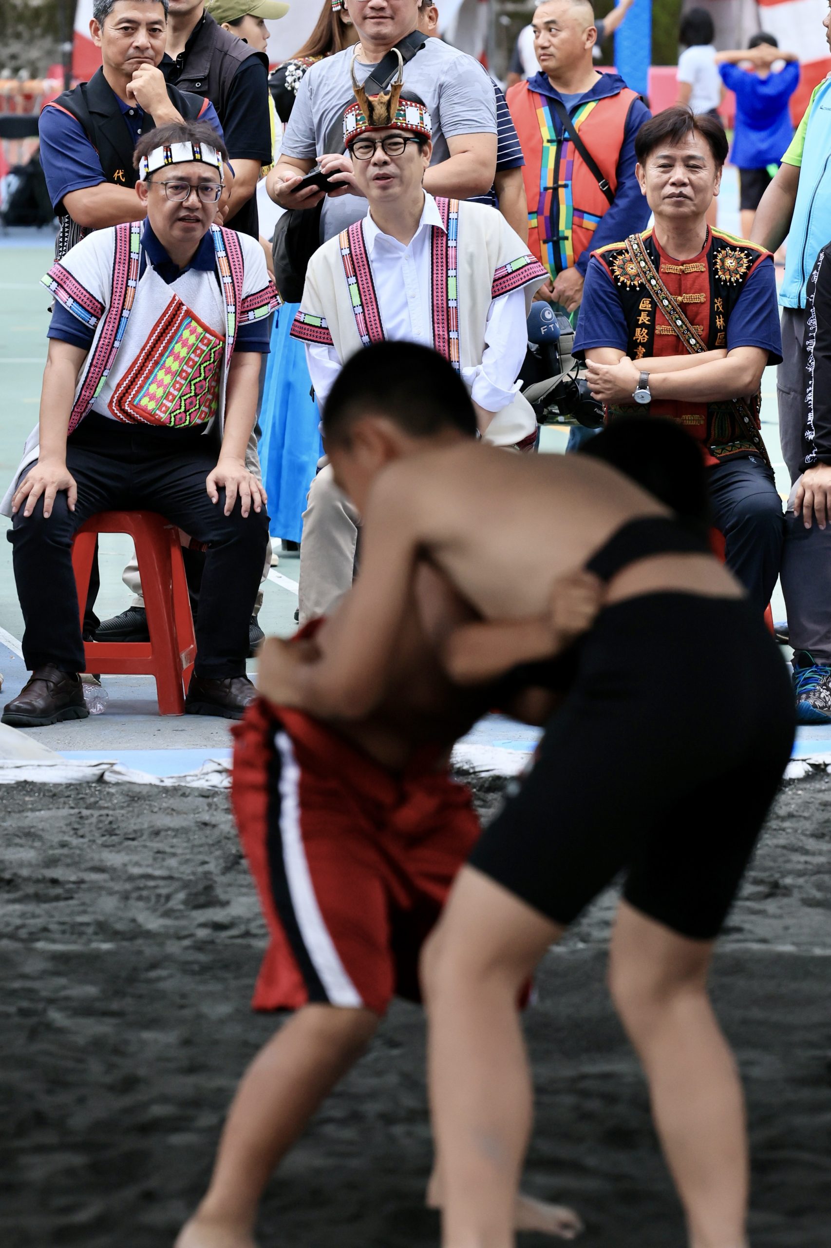 陳其邁身穿布農族傳統服飾,致詞時特別以布農族語表達對選手們的祝福,他並表示高雄是一個多元民族、包容友善的城市,希望大家在射耳祭活動中,都能盡情享受「神仙住的地方」那瑪夏的美麗山水和豐富文化。他也特別提到,現場比賽非常精彩,祝福大家在這段時間裡充分享受這次愉快的射耳祭。