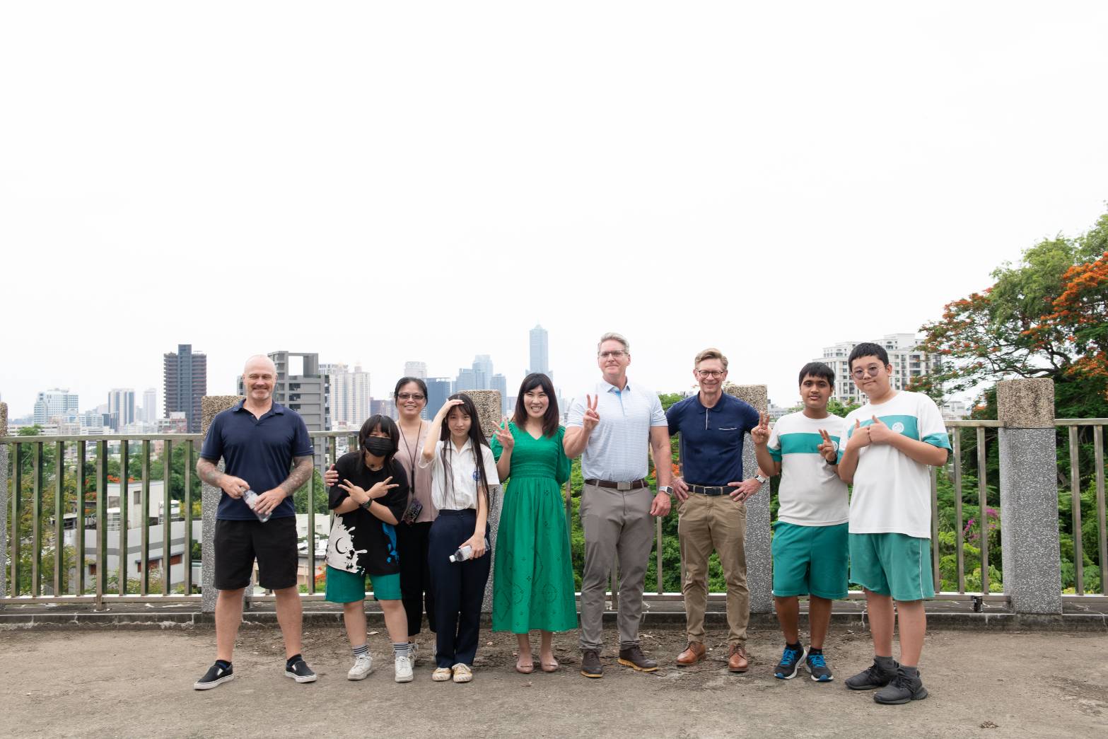 廳長與財務長也在壽山國中絕無僅有的極限運動場地,跟學生競技攀岩,壽山國中畢業生都有攀岩領取畢業證書的傳統,外賓登頂後,孩子笑稱兩位美國貴賓也從壽山國中畢業了!