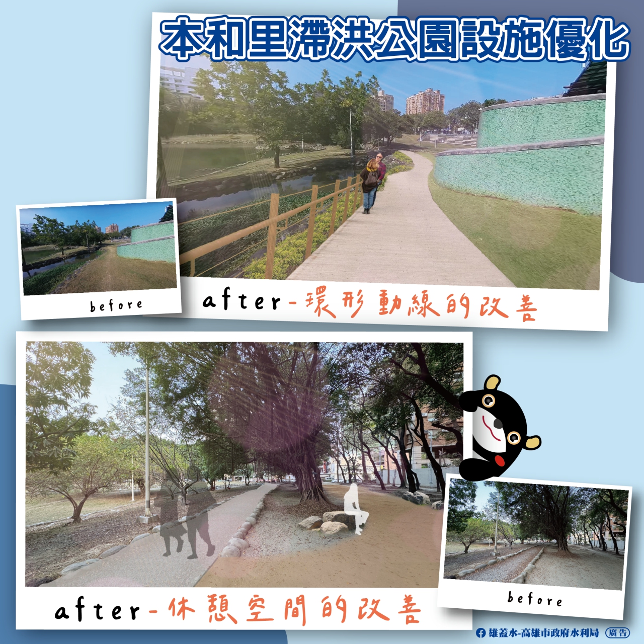 本和里滯洪公園設施優化。(高雄市政府水利局提供)