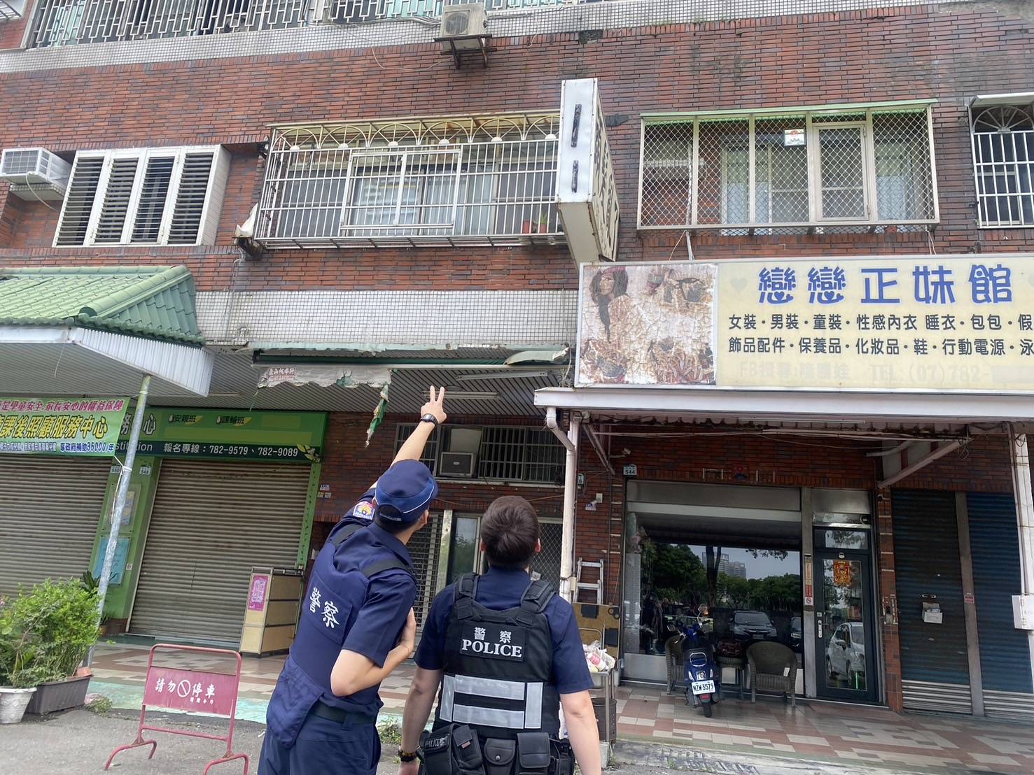 員警調閱周邊監視器及查訪後確認為廢棄冷氣鐵架掉落。(高雄市鳳山警分局提供)