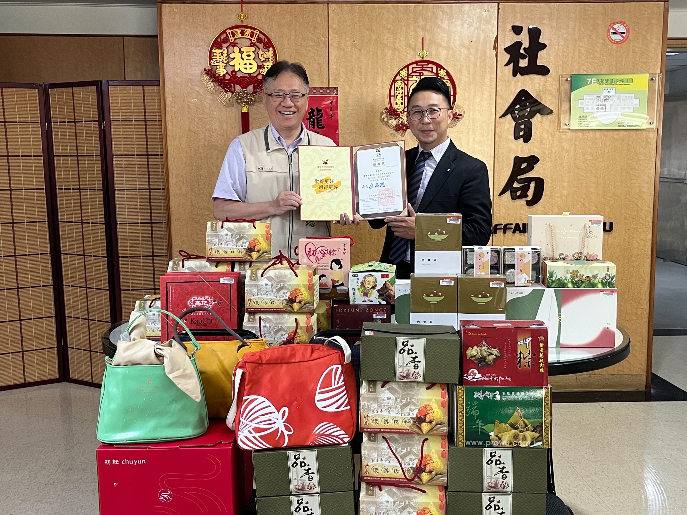 台南大遠百響應臺南巿「照顧弱勢優先」施政理念,於端午節前捐贈111份粽子禮盒,由臺南市政府社會局轉贈社工服務家戶,提供本市弱勢家庭歡度端午佳節,為感謝台南大遠百與市府攜手照顧弱勢,於日前舉行捐贈儀式由社會局盧禹璁局長代表受贈並回贈感謝狀,感謝台南大遠百以粽傳愛,使弱勢家庭感受到社會温暖。