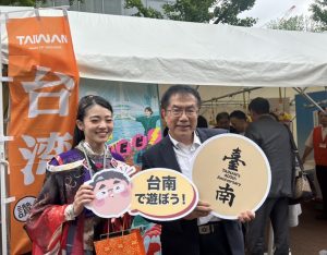 (記者張淑慧報導)日本北海道最盛大的祭典-YOSAKOI索朗祭(YOSAKOIソーラン祭り;以下簡稱索朗祭)為當地最盛大也最悠久的祭典,今(113)年黃偉哲市長率團參與,除首度設置台南物產攤位外,也跟交通部觀光署合作設攤展出豐富的台南觀光資訊,積極爭取北海道民眾來台南一遊,市長也跟參與演出的南應大同學一起出場,為他們打氣應援。